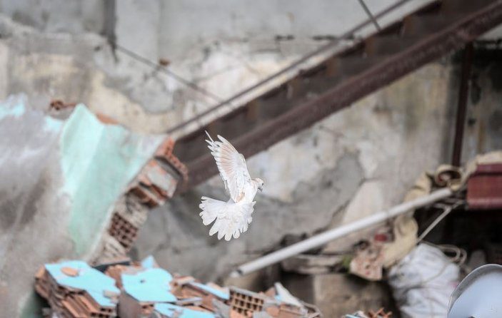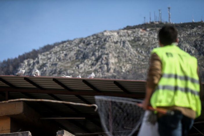Enkazları tek tek gezen Tüydeş, deprem nedeniyle kümesleri yıkılan ya da sahiplerinin ilgilenemediği kuşları yaşatmaya çalışıyor. Yakalayabildiği kuşları kafeslere koyarak yetkililere teslim eden ve yeniden sahiplendirilmeleri için çalışma yürüten Tüydeş, ulaşamadığı kuşlar için ise bölgeye yem bırakıyor.
