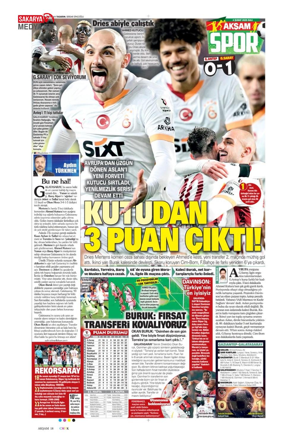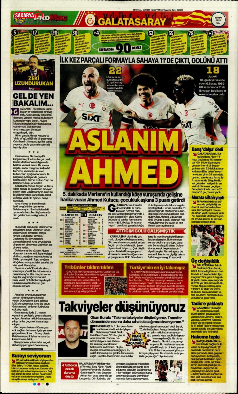 Ahmed Kutucu’nun siftah yaptığı Galatasaray’da Gaziantep deplasmanında 3 puan