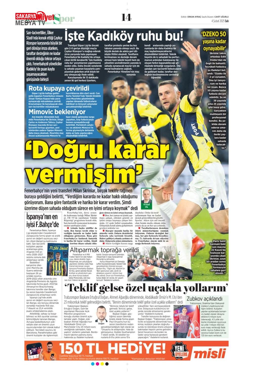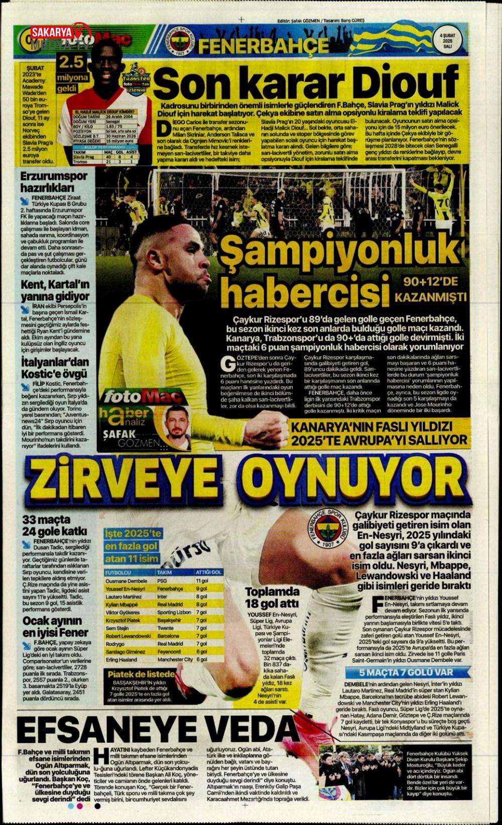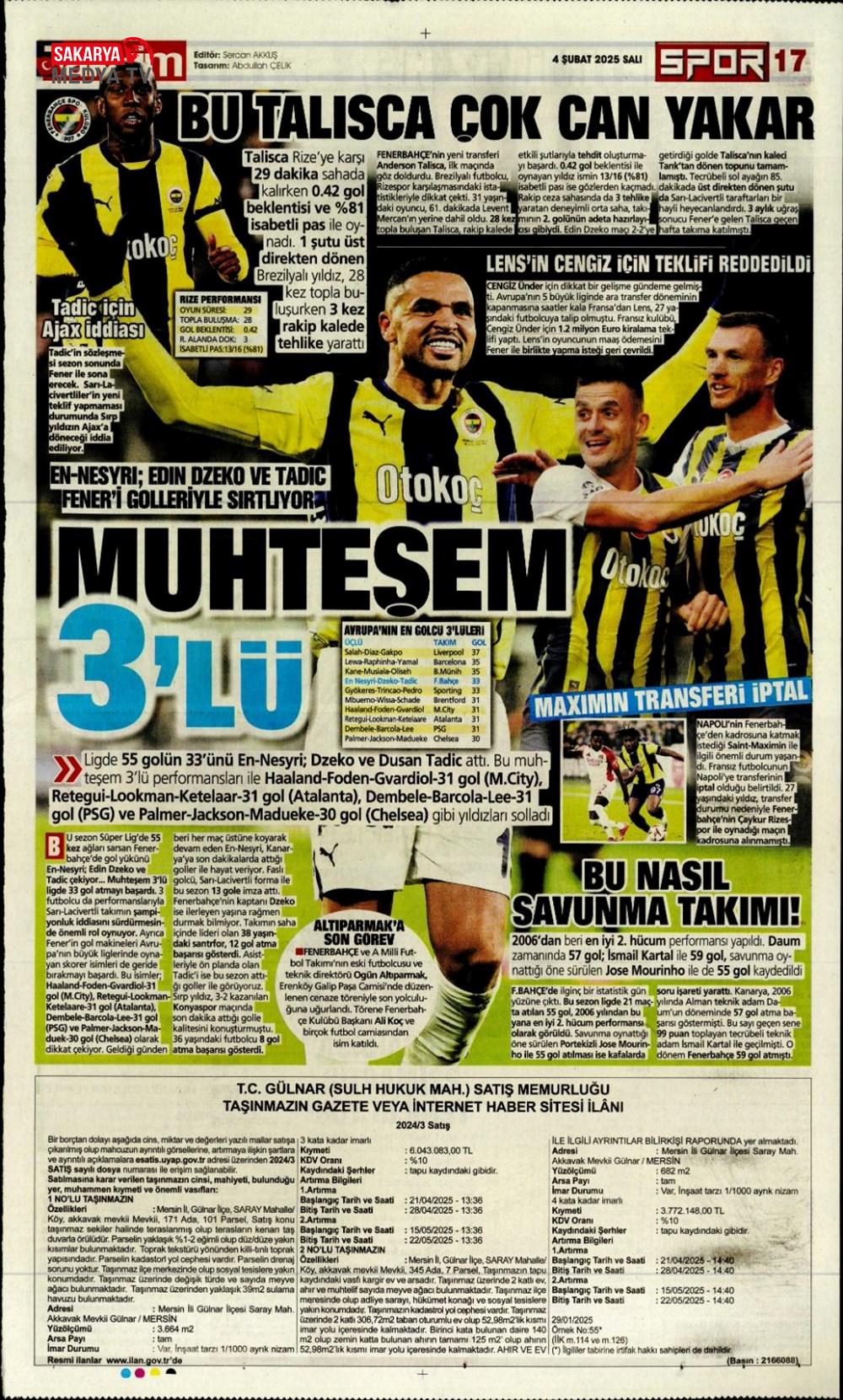 “Fenerbahçe’de Roberto Firmino bombası” (9 Şubat 2025 spor manşetleri)