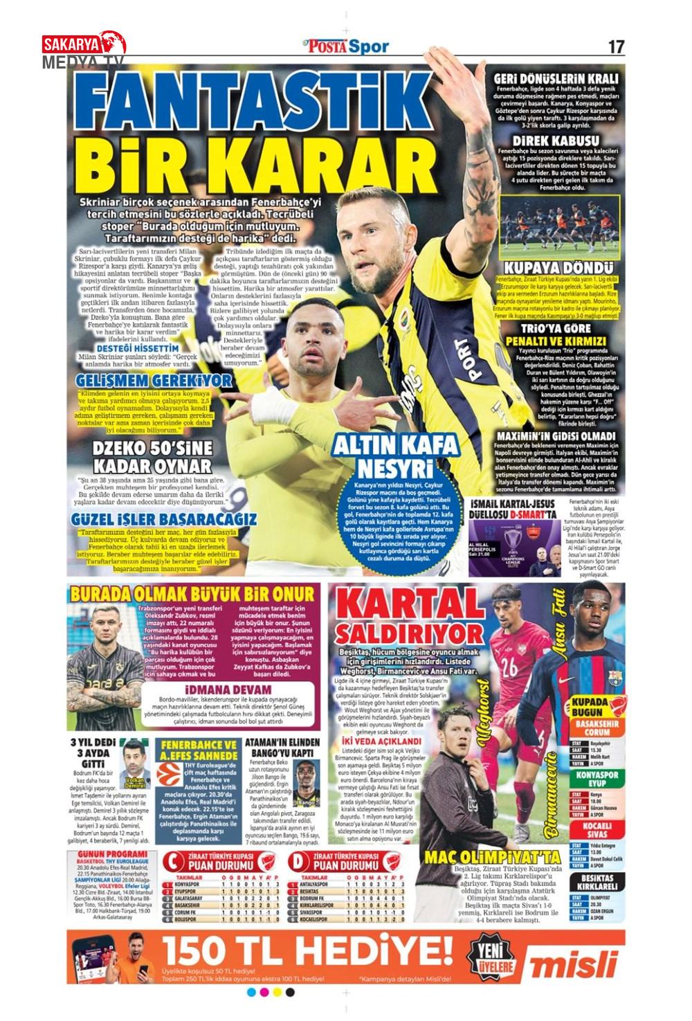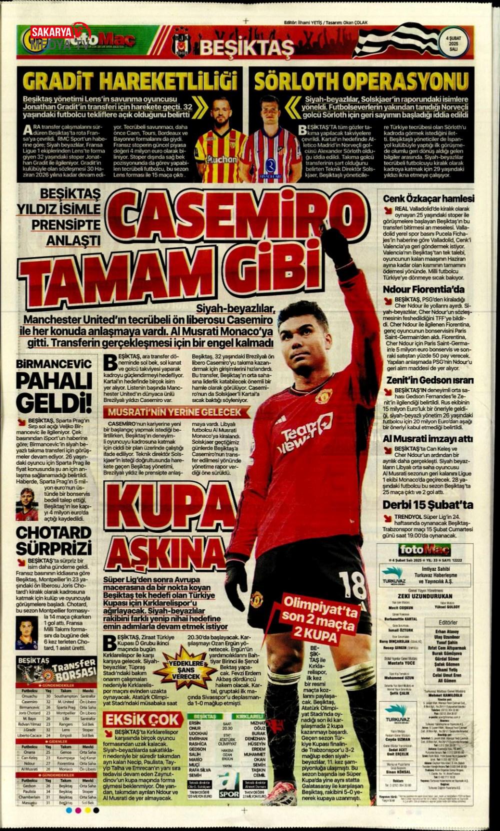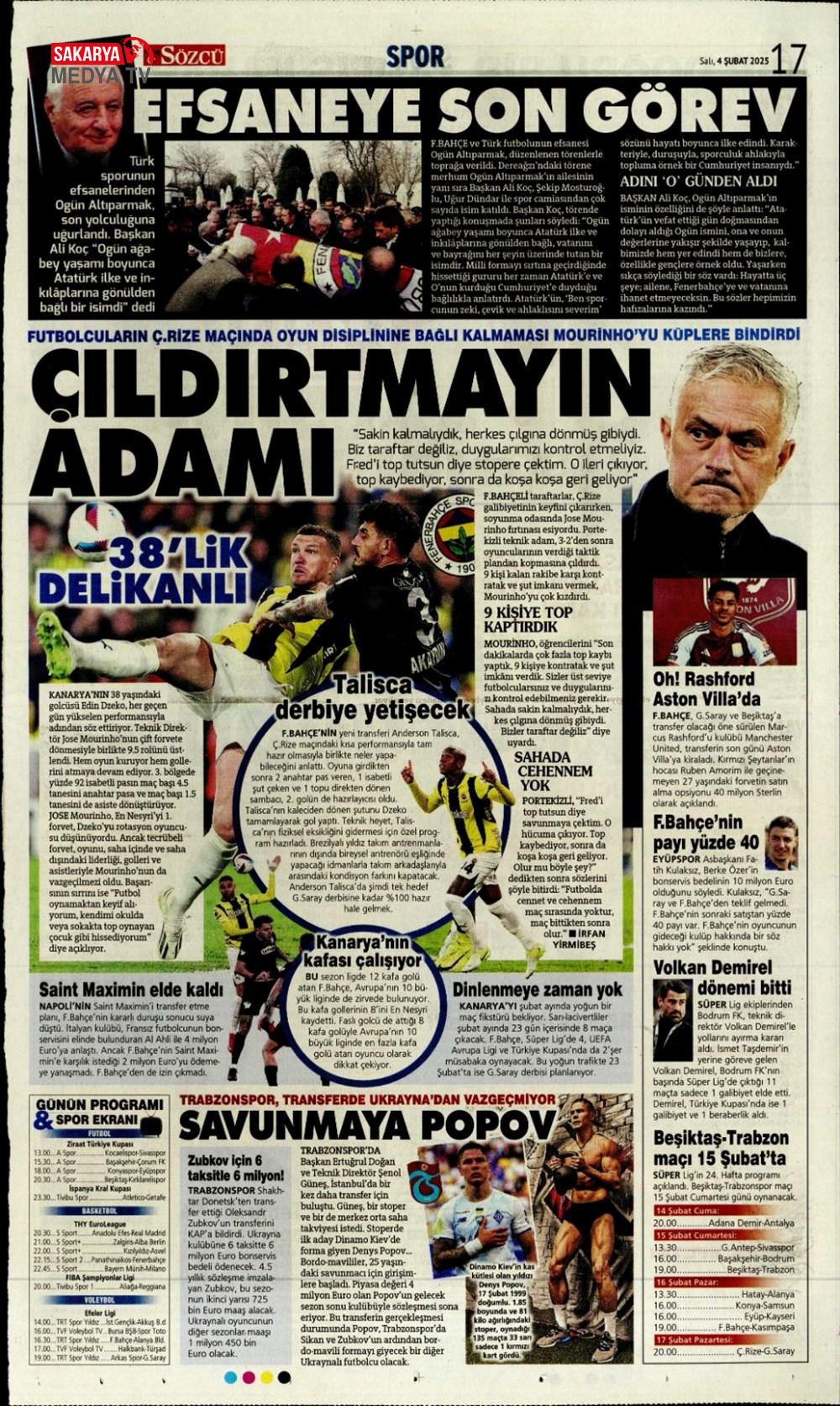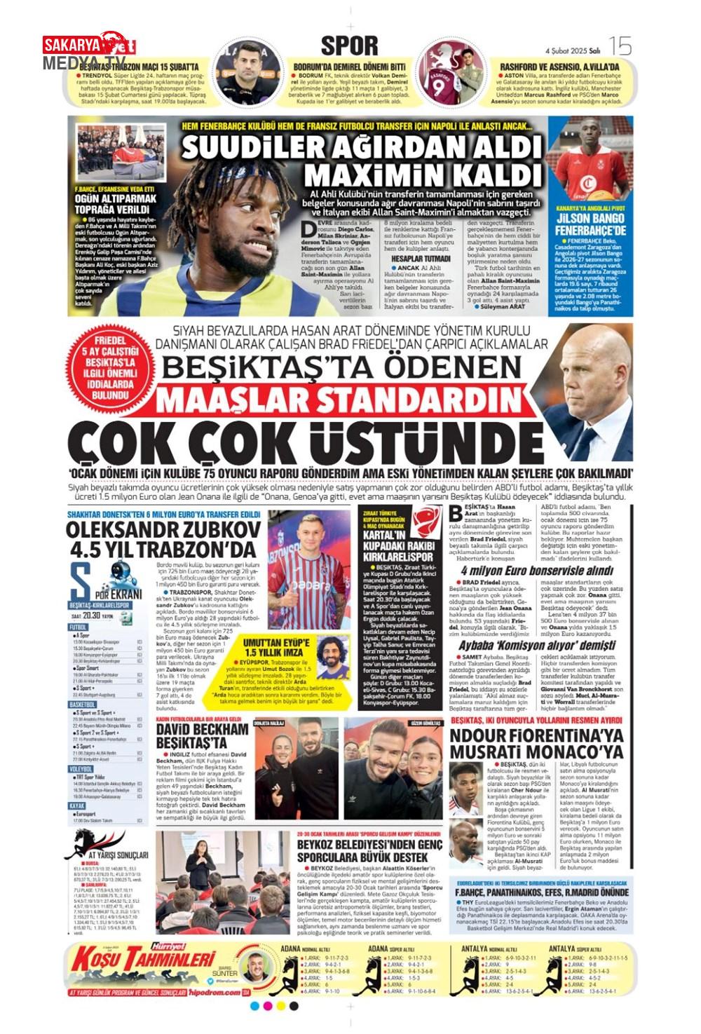 “Fenerbahçe’de Roberto Firmino bombası” (9 Şubat 2025 spor manşetleri)