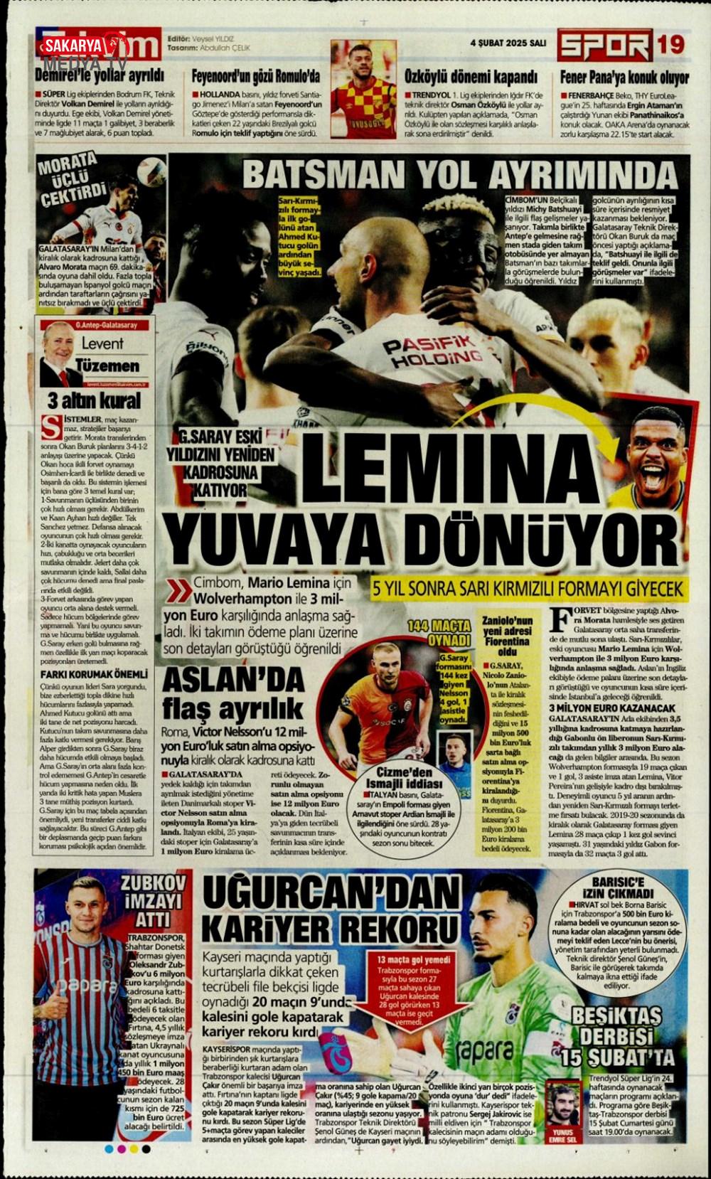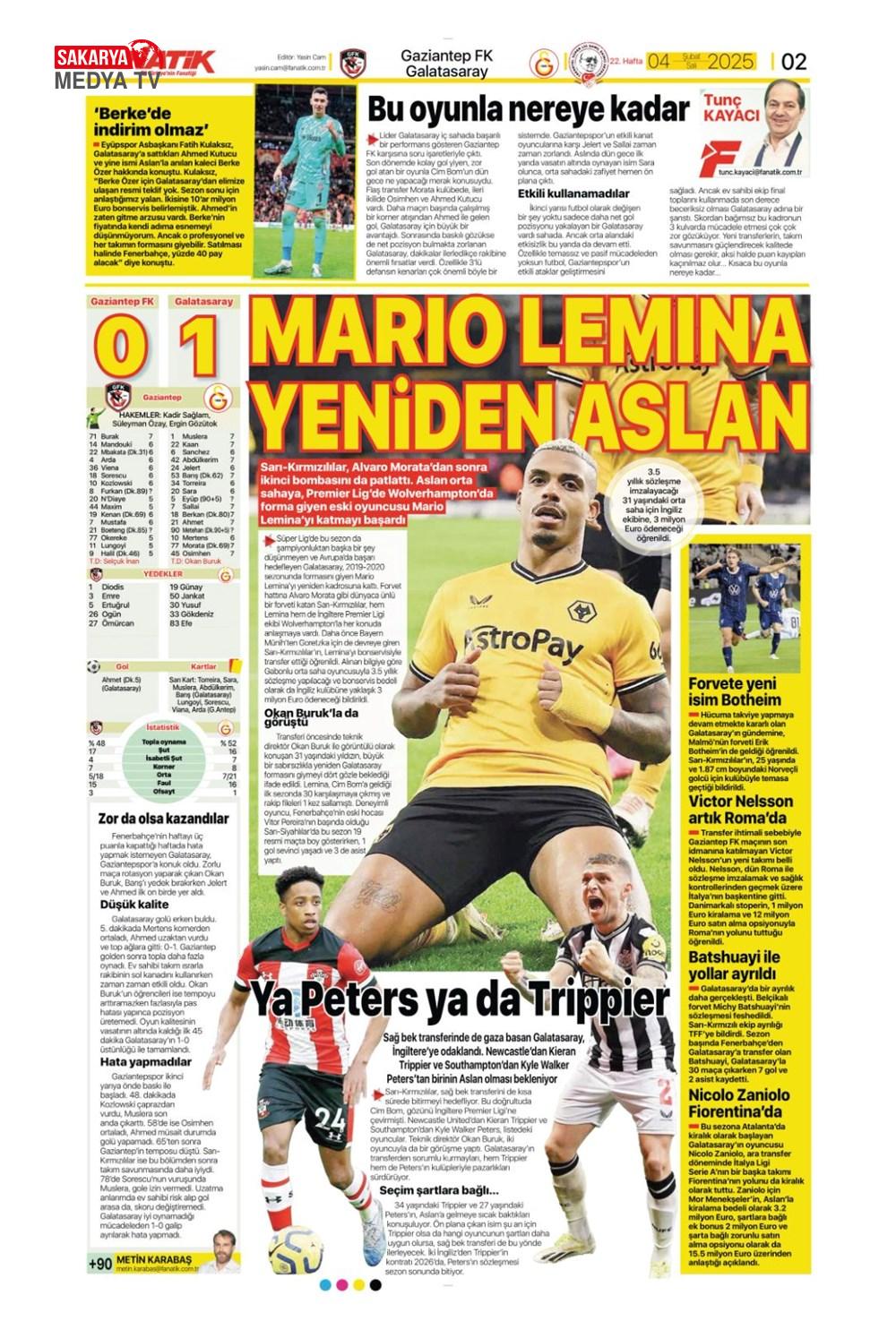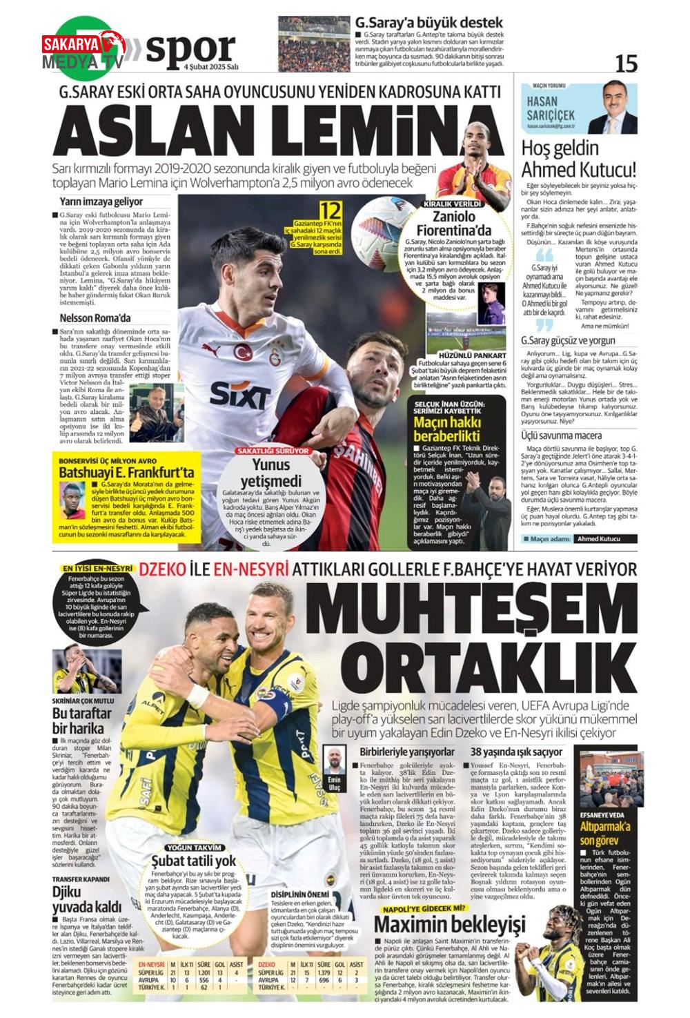 Lemina’nın parası Batshuayi’den (5 Şubat 2025 spor manşetleri)