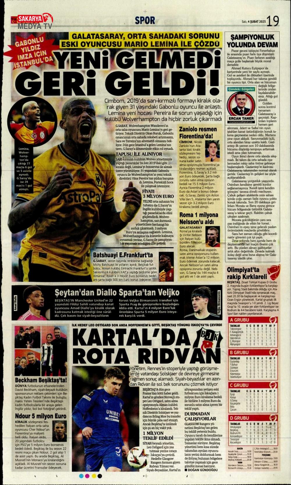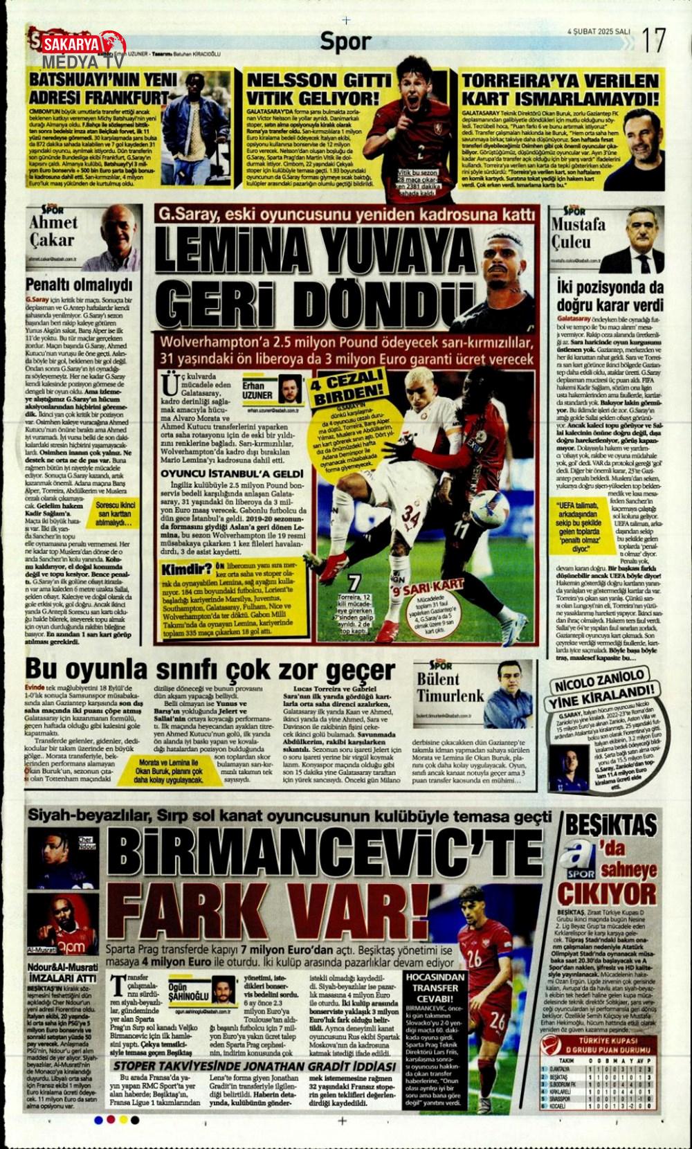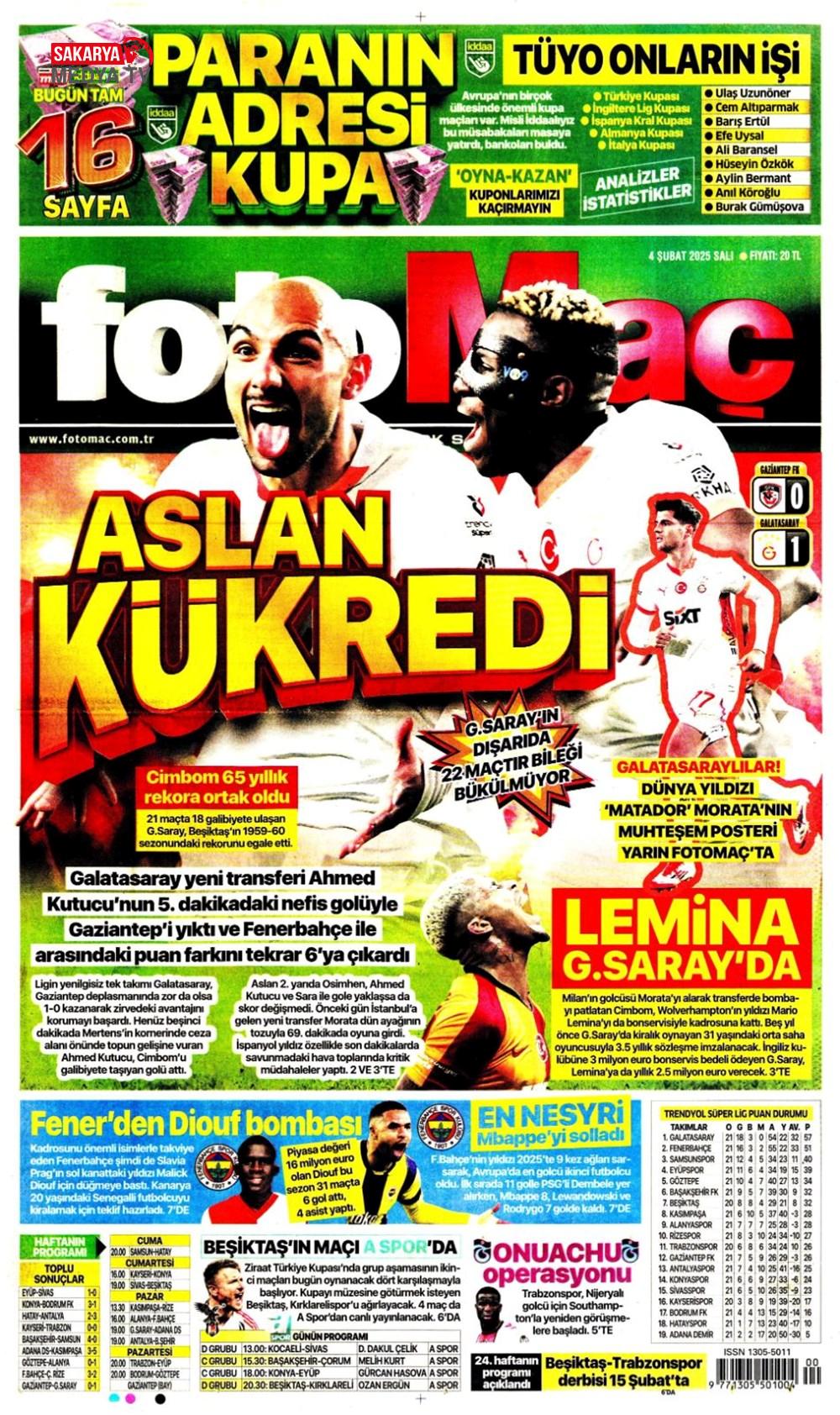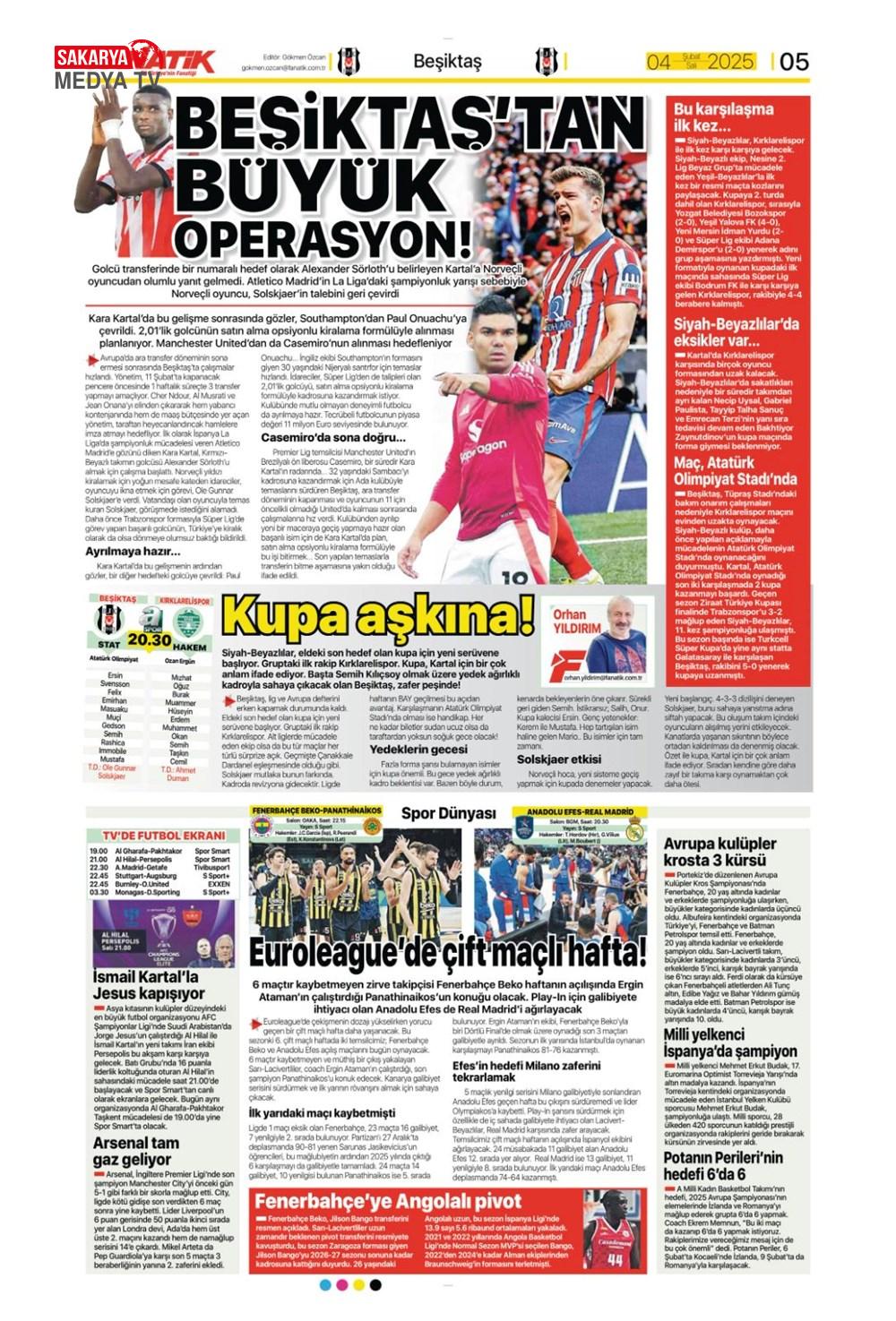 Lemina’nın parası Batshuayi’den (5 Şubat 2025 spor manşetleri)