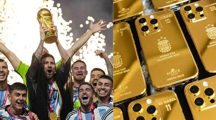 Günümüz futbolunun efsane isimlerinden Lionel Messi‘nin Katar’daki 2022 Dünya Kupası finalinde zafere ulaşan Arjantin milli takımı futbolcuları ve ekibin diğer üyeleri için 35 adet altın iPhone akıllı telefon sipariş ettiği ortaya çıktı. 175.000 sterline mal olan 24 ayar altın kaplama akıllı telefonların üzerine oyuncuların isimleri, numaraları ve Arjantin milli takım logosu işlendi. Aktarılan bilgilere göre Messi tarihi zafer şerefine özel ve gösterişli bir şey yapmak istedi.