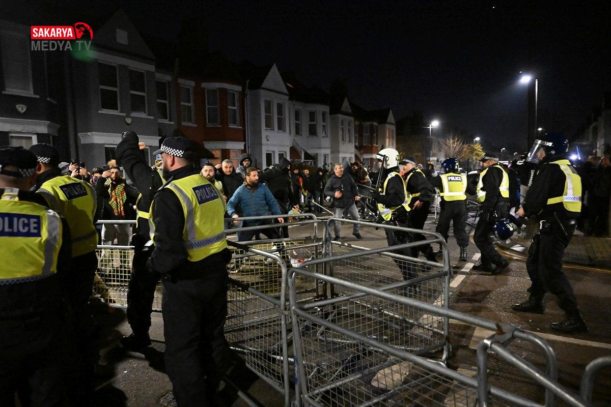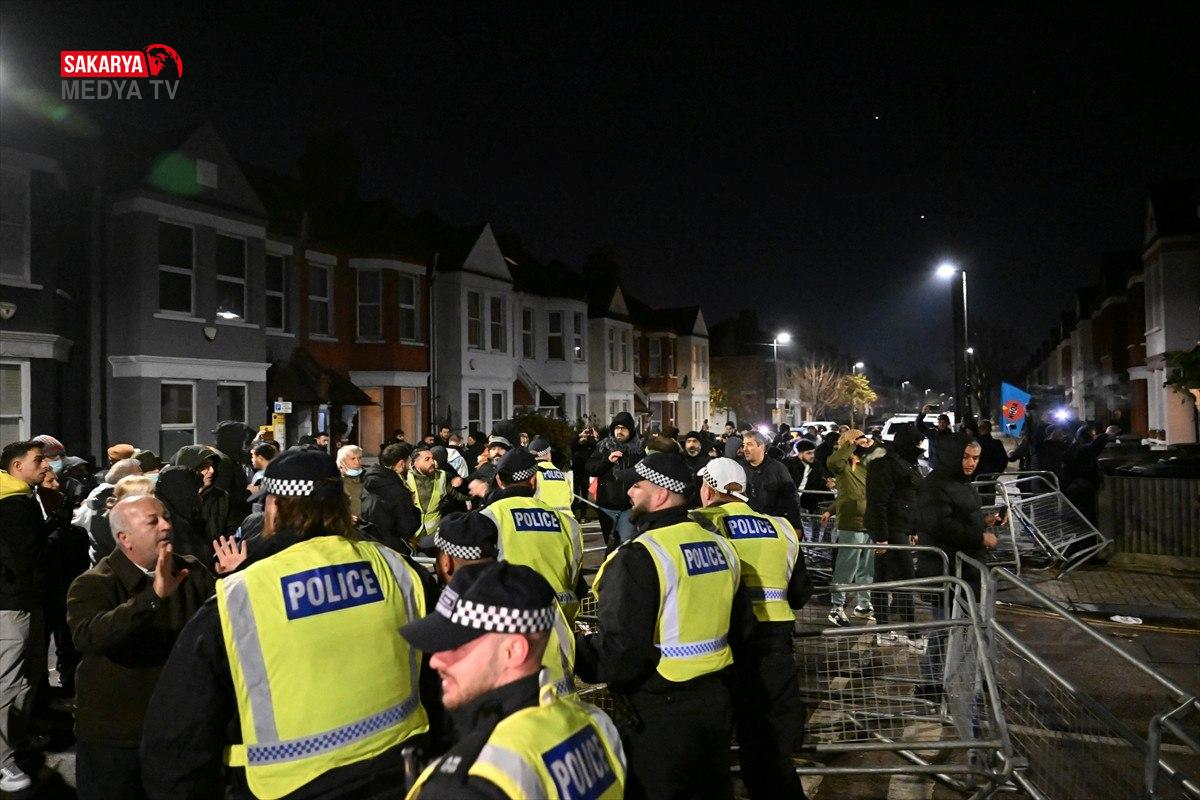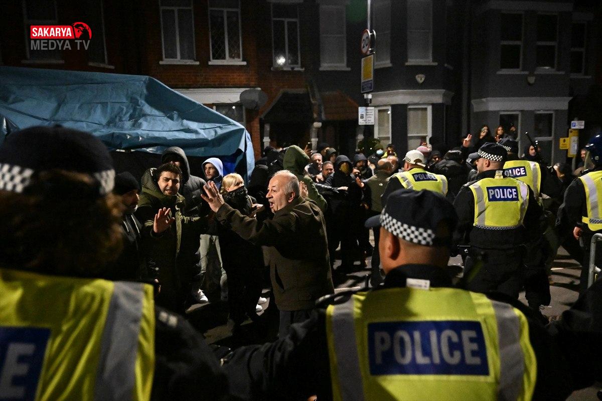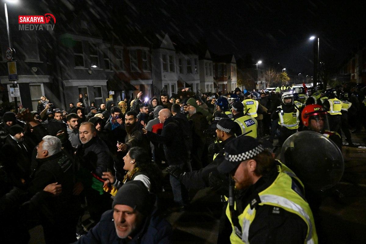 Haringey’deki dernek önünde bir araya gelen örgüt destekçileri ile bu noktada barikat kurmak isteyen polis arasında arbede çıkmış ve çıkan olaylarda 4 kişi gözaltına alınmıştı. Kaynak: Anadolu Ajansı (AA)