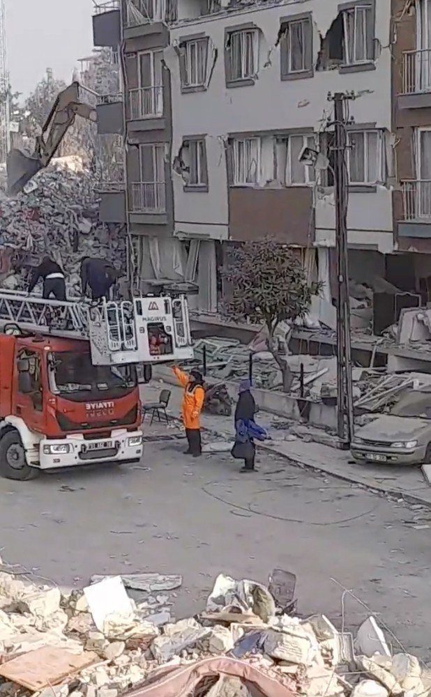 O anlarda binanın karşındaki bir enkazda kurtarma çalışmalarına destek veren bir vatandaş o anları görüntüledi.