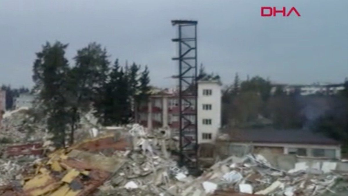 Hatay’da tüm binalar yıkılırken yangın merdiveni ayakta kaldı