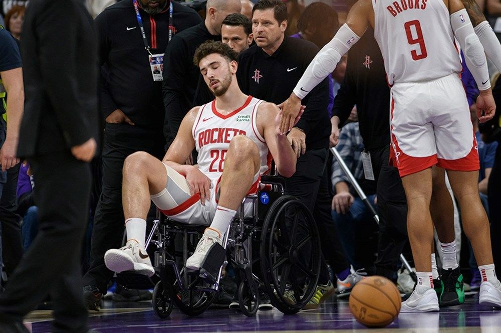 NBA’de evvelki gün oynanan Sacramento Kings-Houston Rockets maçında sakatlanan 22 yaşındaki ulusal basketbolcu Alperen Şengün’ün sağlık durumuyla ilgili açıklama geldi. Dünyaca ünlü spor kanalı ESPN, Alperen Şengün’ün sakatlığıyla ilgili detayları paylaştı. Milli basketbolcunun ayak bileğinin önemli biçimde burkulduğu ve dizinde morarma meydana geldiği belirtildi. Alperen Şengün’ün maç sonrası MR’ının çekildiği ve oyuncunun saktalığının ameliyat gerektirmediği vurgulandı. Genç pivotun 14 Nisan’da sona erecek olan olağan dönemde forma giymesinin sıkıntı olduğu aktarıldı.