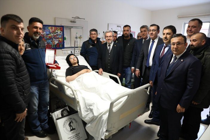 Depremin 248’nci saatinde kurtarılan Aleyna Ölmez’i sevindiren bir ziyaret daha gerçekleşti. 6 Şubat günü Kahramanmaraş merkezli depremin ardından enkaz altından 248’nci saatte kurtarılan 17 yaşındaki Aleyna Ölmez’i enkazdan kurtaran madenciler tedavi gördüğü Ankara Üniversitesi Cebeci Hastanesinde ziyaret etti. Madenciler, Aleyna Ölmez ve teyzesi ile görüştü, çiçek ve plaket takdim etti.