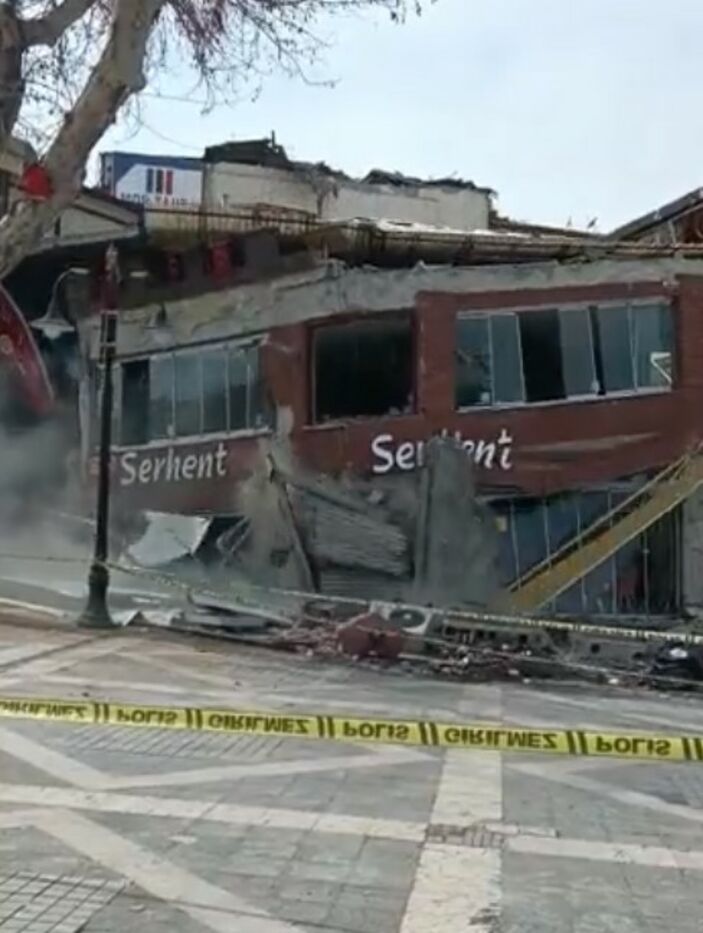Ağır hasarlı kafe de çöktü