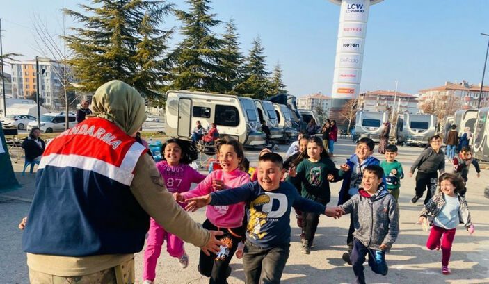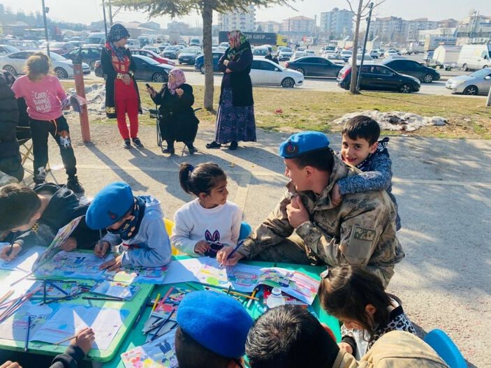 Ekipler, AFAD çadırında kalan depremzedeleri ziyaret ederek, burada çocuklarla çeşitli etkinlikler yaptı.