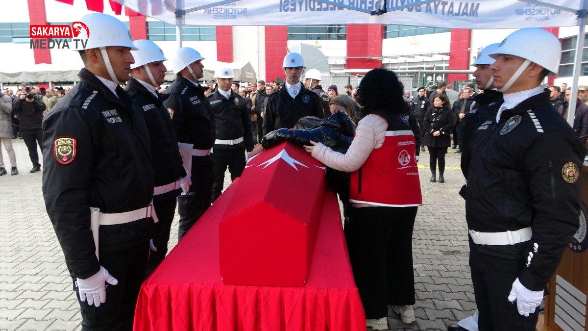 Malatya’nın Doğanşehir ilçesinde meydana gelen trafik kazasına müdahale ettiği sırada tırın çarpması sonucu şehit olan polis memuru Lütfü Beykoz için tören düzenlendi. Şehit polisin Türk bayrağına sarılı naaşı, Malatya Şehir Mezarlığı’ndaki işlemlerinin ardından İl Emniyet Müdürlüğü bahçesine getirilerek katafalka konuldu. Saygı duruşunda bulunulmasının ardından şehidin öz geçmişi okundu.