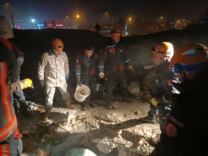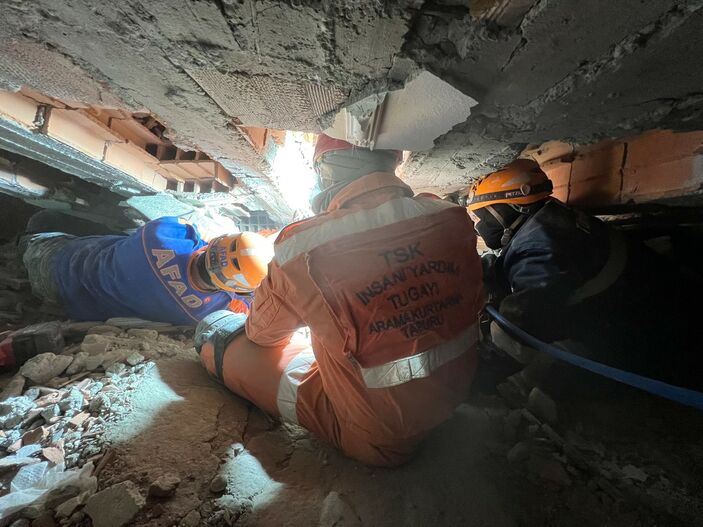 Ancak hafif hafif yaklaşınca ses geldi. Burada 6 saat boyunca bir arkeolog nasıl çalışıyorsa o şekilde çalıştık. Mehmet ile konuştuğumuzda annesinin de ayak bölgesinde olduğunu söyledi. Teyzemin de yaşadığını tespit ettik. Çalışma yaptığımızda teyzenin de kapı aralığına sıkıştığını ve zor durumda olduğunu gördük.