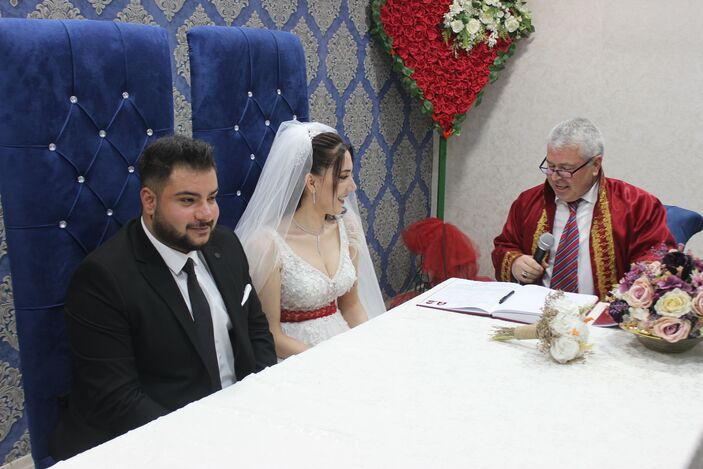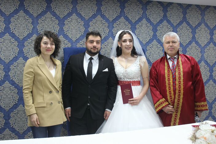 Malatya’da yaşayan 24 yaşındaki Miraç Bakır ile 27 yaşındaki Tuğçe Tekin çifti, evlenmek için nikah tarihi aldı. 6 Şubat’ta meydana gelen iki büyük depremde evleri hasar gören genç çift, aileleriyle birlikte Kırklareli’ne yerleşti. Genç çift, nikah başvurusunda bulundu. Başvurunun olumlu sonuçlanmasının ardından depremzede çift için belediye nikah salonunda tören düzenlendi. Atılan imzaların ardından Vali Yardımcısı Elif Canan Tuncer, evlilik cüzdanını teslim etti.