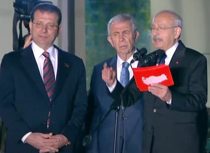Kılıçdaroğlu’nun adaylığını açıkladığı sırada yanıbaşında bulunan Ankara Büyükşehir Belediye Başkanı Mansur Yavaş ile İstanbul Büyükşehir Belediye Başkanı Ekrem İmamoğlu, düşük moralli tavırlarıyla dikkat çekti.
