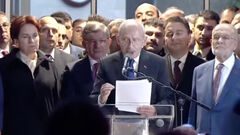 CHP Genel Başkanı Kemal Kılıçdaroğlu, Saadet Partisi genel merkezinde ittifakın diğer liderleriyle yapılan görüşmenin ardından adaylığını resmen açıkladı.