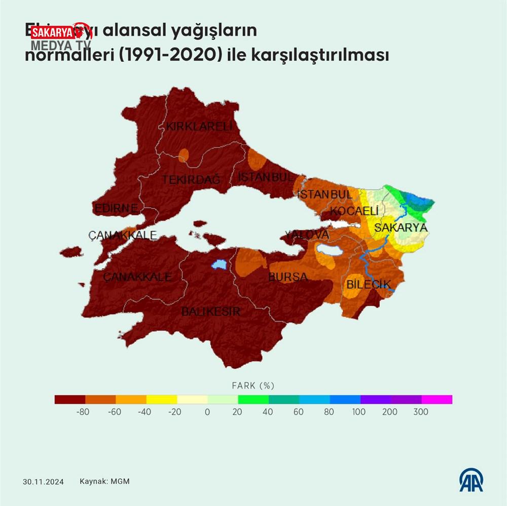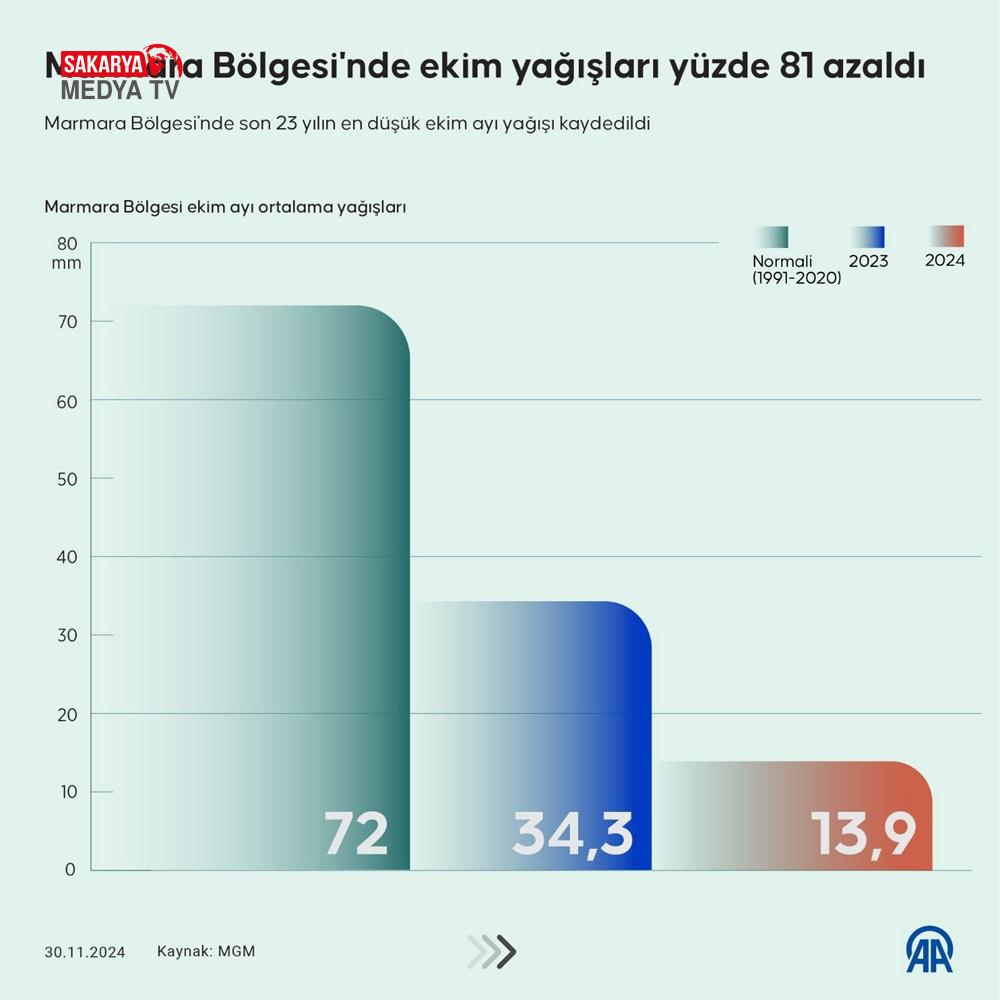 Marmara Bölgesi’nde ekim yağışları, 1991-2020 yılları ortasını kapsayan periyoda ilişkin uzun yıllar ortalamasına nazaran yüzde 81, geçen yılın birebir periyoduna nazaran ise yüzde 60 azaldı. Meteoroloji Genel Müdürlüğü bilgilerinden edinilen bilgilere nazaran, bölgede ekim ayında düşen yağışın uzun yıllar ortalaması 72 milimetre ölçüldü. Bölgeye geçen yıl ekimde 34,3 milimetre, bu yılın birebir devrinde ise 13,9 milimetre yağış düştü. Buna nazaran bölgede ekim yağışları, uzun yıllar ortalamasına nazaran yüzde 81, geçen yılın tıpkı devrine nazaran yüzde 60 azaldı. Bölgede Balıkesir, Bilecik, Bursa, Çanakkale, Edirne, Kırklareli, Tekirdağ, İstanbul ve Yalova’da son 23 yılın en düşük ekim yağışı kaydedildi.