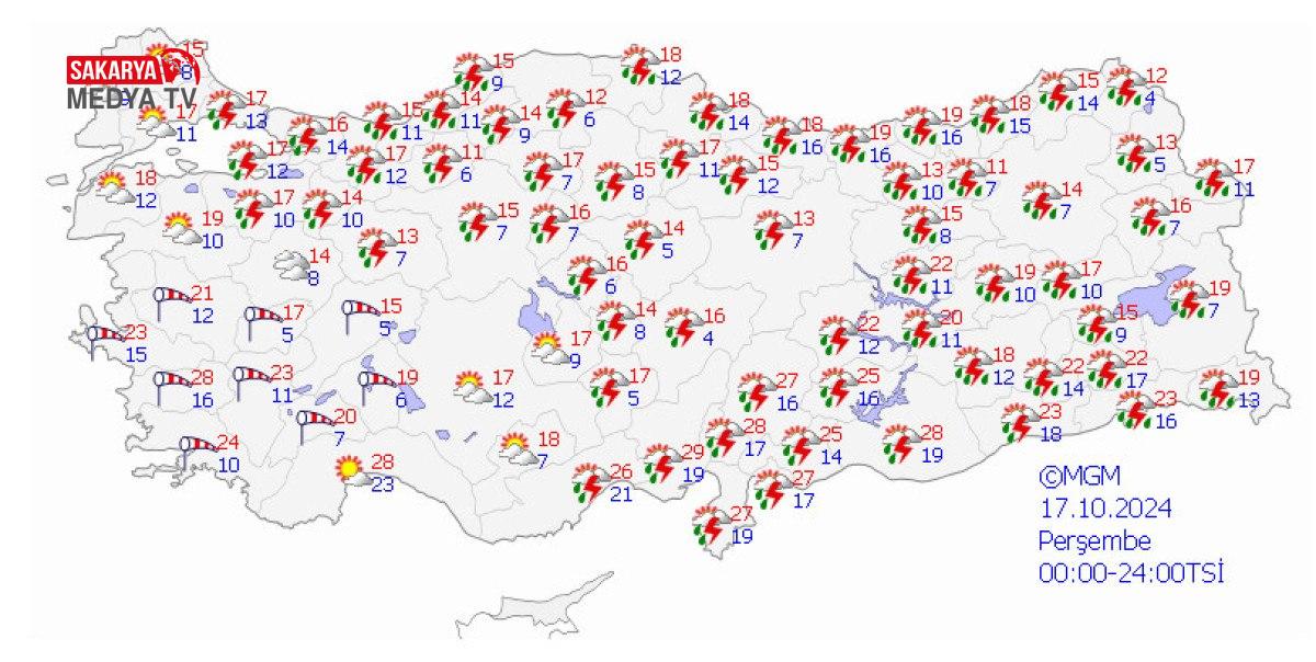 Önümüzdeki hafta başına kadar kimi vilayetlerimizde beklenen günün en yüksek ve en düşük hava sıcaklıkları ise şöyle: İstanbul: 15-9,Kocaeli: 15-8,Sakarya: 16-8,Yalova: 17-9, Edirne: 15-7,Kırklareli: 14-6,Tekirdağ: 15-7.