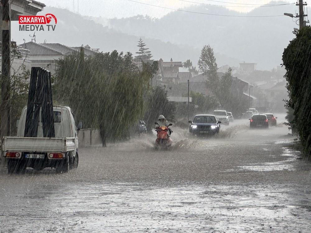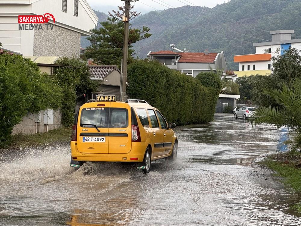 Muğla’nın Marmaris ilçesinde sağanak yaşamı olumsuz etkiledi. Öğle saatlerinde etkisini gösteren sağanak, kısa sürede su birikintilerine neden oldu. Sağanak nedeniyle su birikintisinde kalan araç sürücüleri zor anlar yaşadı.