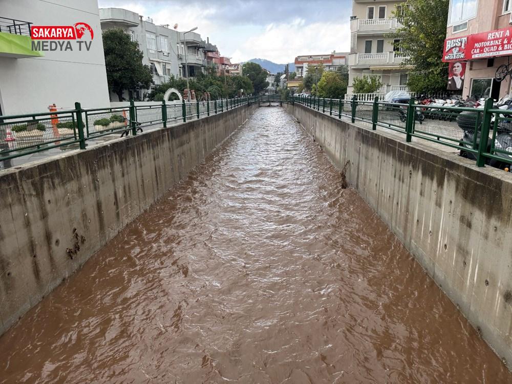 Yüksek kesimlerden gelen çamurlu su sebebiyle denizin rengi kıyı bölgelerde kahverengiye dönüştü.