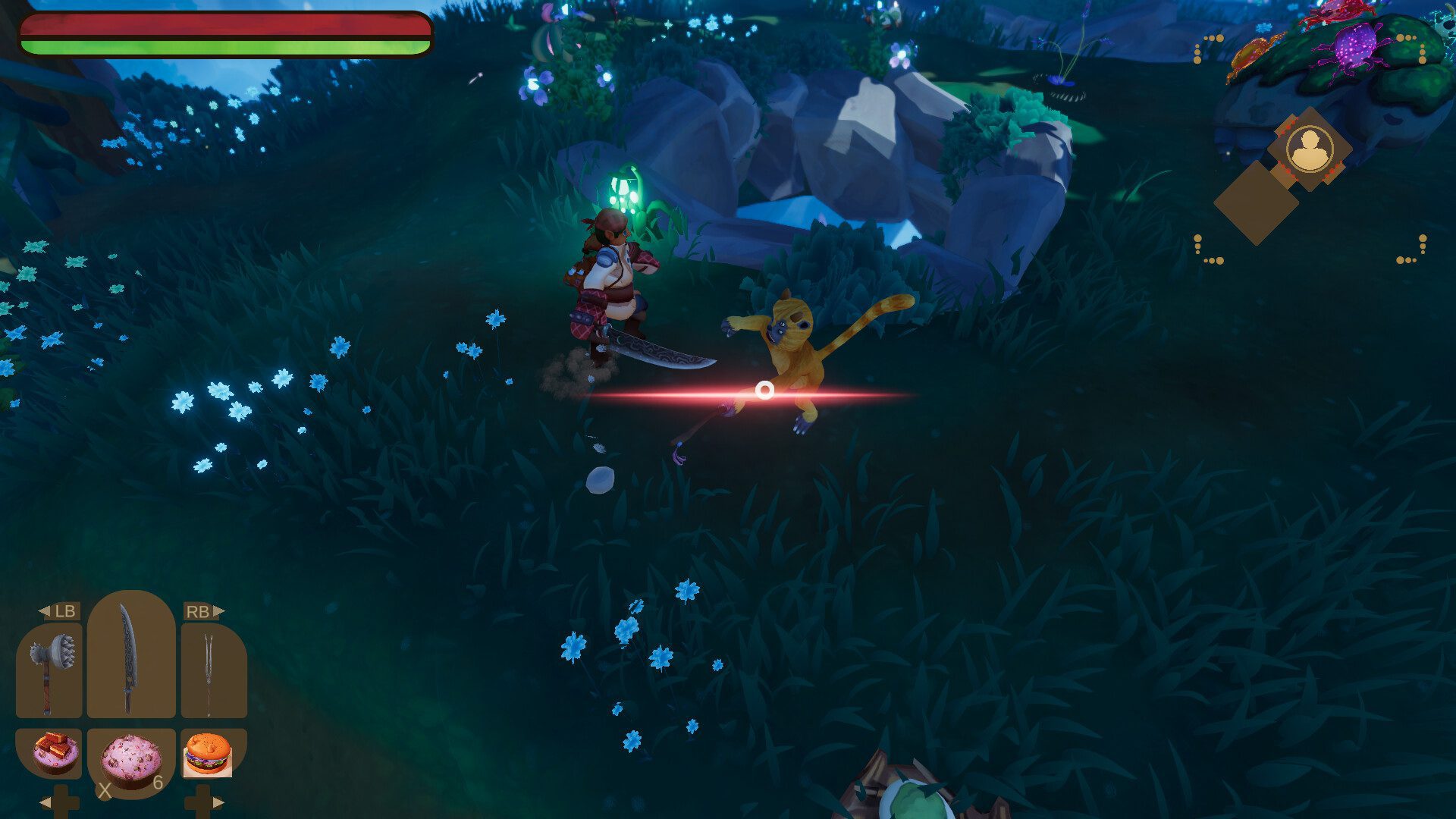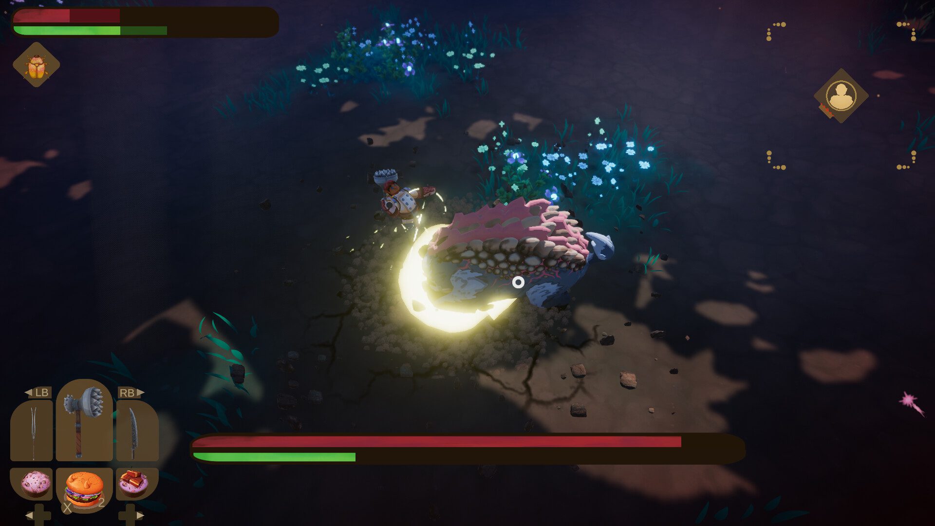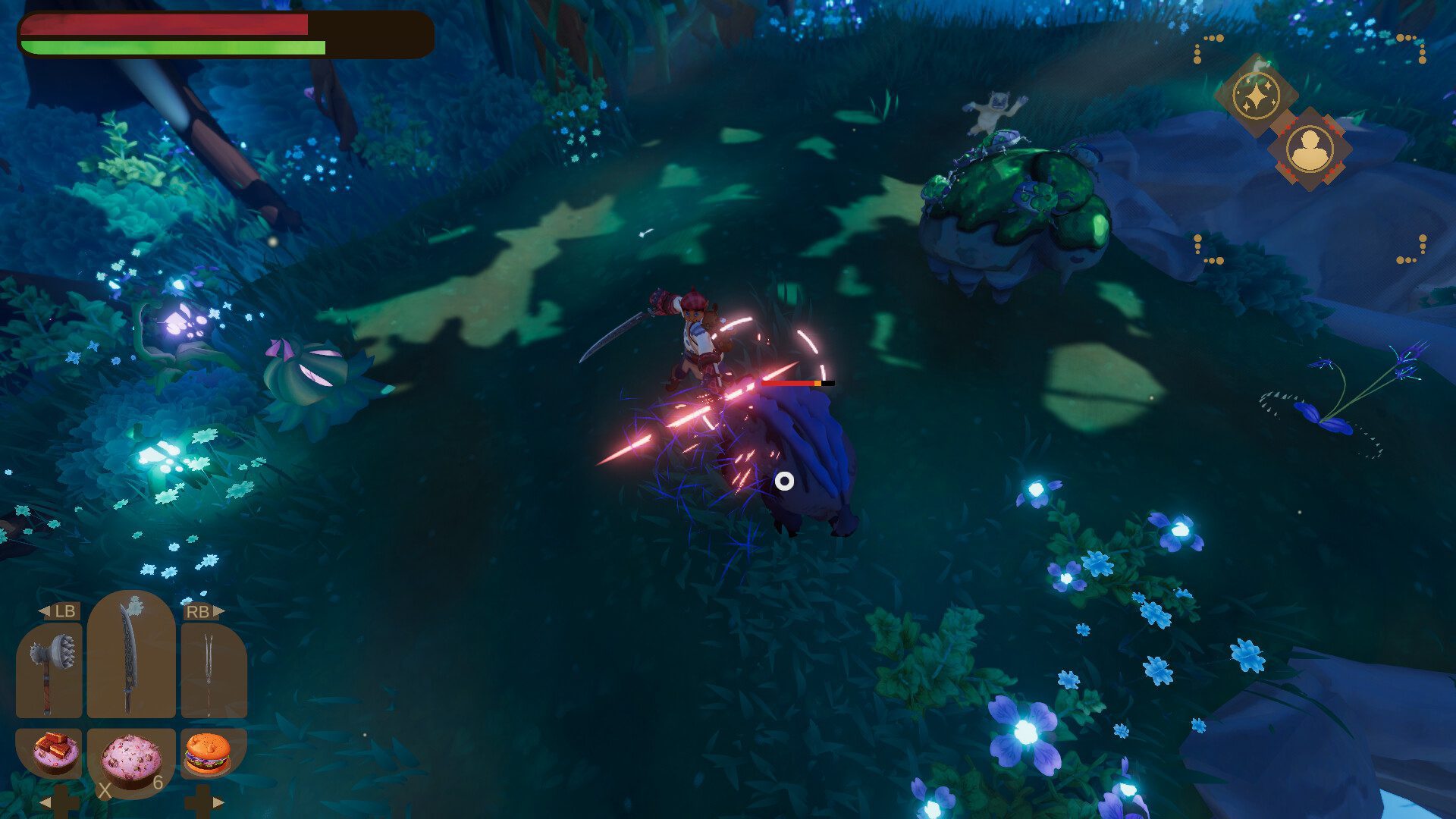 Oyunun temel amacı aslında restoranımız için yemek çıkarmak. Tabii bunu yapmak için de etraftan kaynaklar toplamamız gerekiyor. Dolayısıyla etraftan kaynaklar toplamak için de büyük bir mücadeleye atılmamız lazım. Haliyle oyun içerisinde kılıcımızı elimize alıyor, dışarı çıkıp çeşitli kaynaklar toplamaya çalışırken düşmanlarla karşılaşıyor ve onları alt ediyoruz. Bunun yanı sıra çeşit tehlikelere atılabiliyoruz. Zindan temelli bu restoran işletme oyununda aslında bizlere farklı iki mekanik birleştiriliyor diyebilirim.