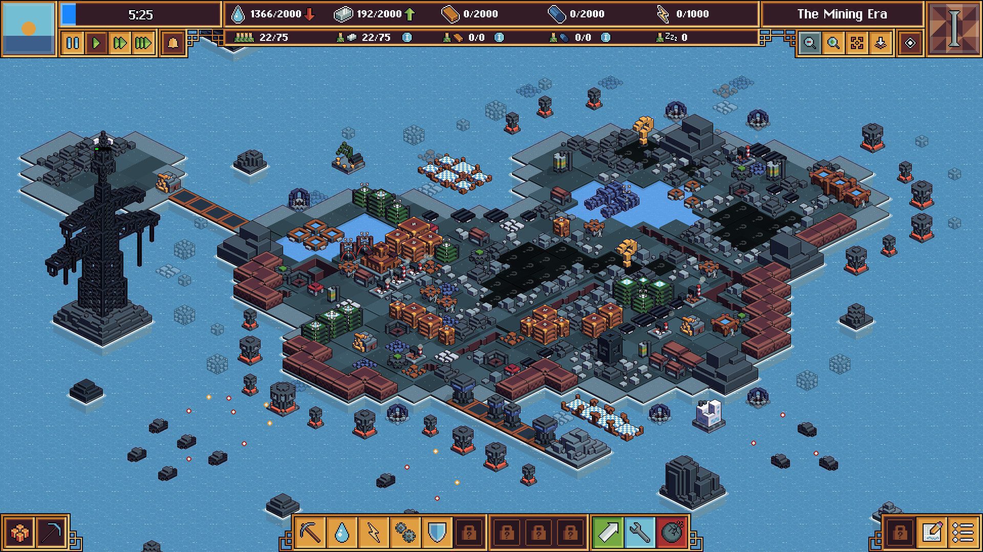 Bir yandan kaynak toplayacağımız bir yandan da şehri yukarıya doğru yükselteceğimiz bu yapım içerisinde çevreyi keşfedebilecek, buralara farklı yapılar dikebilecek ve birçok türde kaynaklar üretebileceğiz. Ürettiğimiz bu kaynakları birleştirerek yeni yapıların kilidini açabileceğiz. Dünyanın suları altında kaldığı ancak bizim de bu sular altından yukarılara doğru yükselmeye çalıştığımız bu oyunda çok çeşitli ve değerli kaynakları bulmaya çalışacağız.