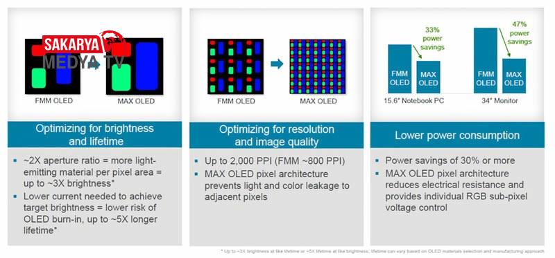 MAX OLED’deki temel ilerleme yeni nesil cam substratların kullanılmasında yatıyor. Gen 6’dan Gen 8’e geçiş üreticilerin daha büyük ve daha uygun maliyetli OLED paneller üretmesine olanak tanıyacak. Yeni teknoloji aynı zamanda üretim süreçlerini de optimize ederek daha düşük maliyetlerle üretim yapılmasınının önünü açıyor. Üretim sürecinde çevreye daha az zarar verilmesi de bir başka artısı.