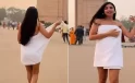 Hint Kapısı önünde havlu ile dans eden model tepki çekti