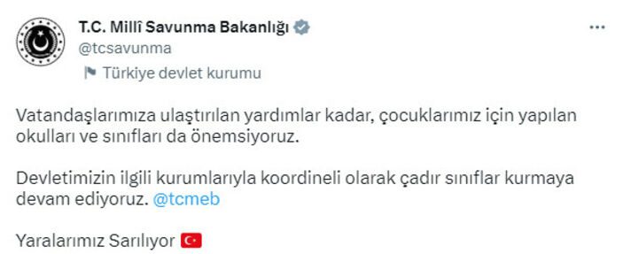 Devletimizin ilgili kurumlarıyla koordineli olarak çadır sınıflar kurmaya devam ediyoruz.