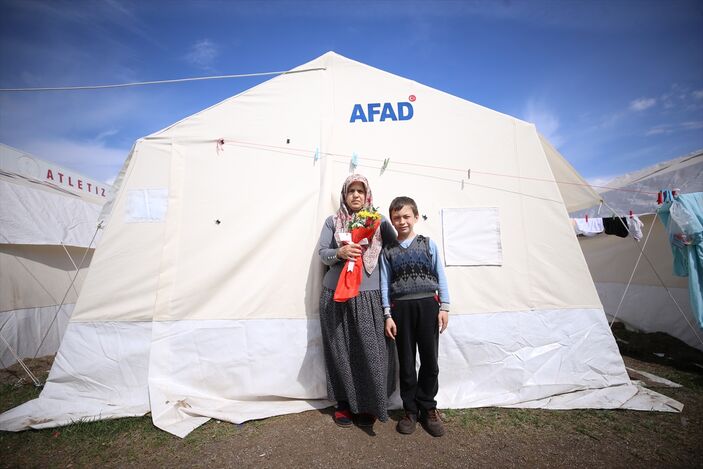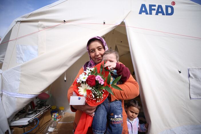 Mehmetçik, burada yaşayan kadınlara çiçek verdi. Çadır kentte bulunan Semiha Çoban, çadırda yaşamın zor olduğunu dile getirerek, kendilerini unutamayan ve destek olan Mehmetçiğe teşekkür etti.