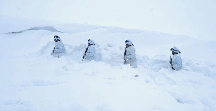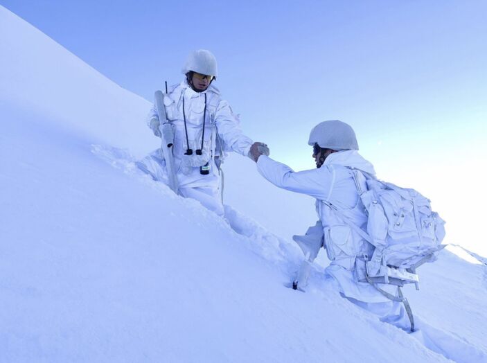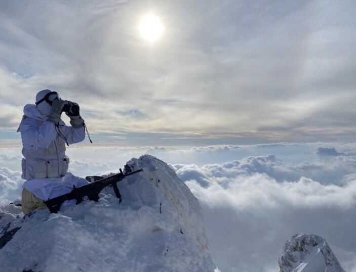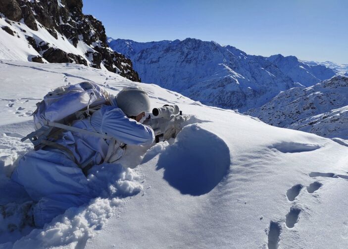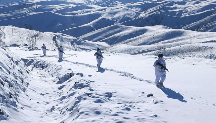Bakanlığın Twitter hesabından yapılan paylaşımda, Mehmetçik’in karla kaplı dağlardaki devriyesi görüntülendi.