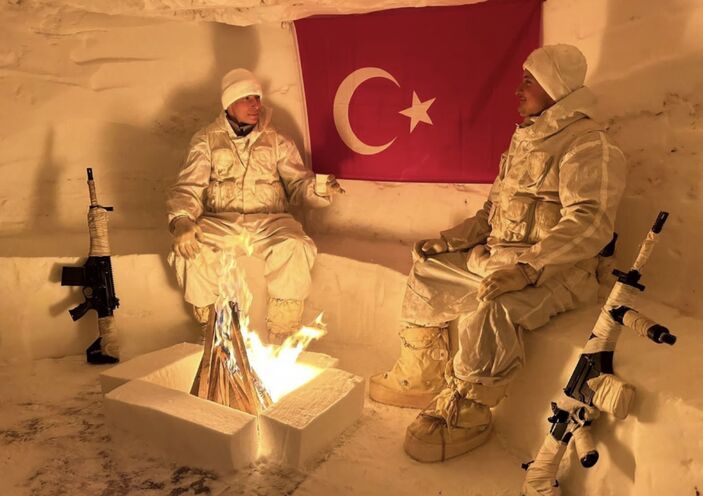 Zorlu kış şartlarında vatan nöbetini bir an bile olsun bırakmayan Mehmetçik’in o anları beğeni yağmuruna tutuldu.