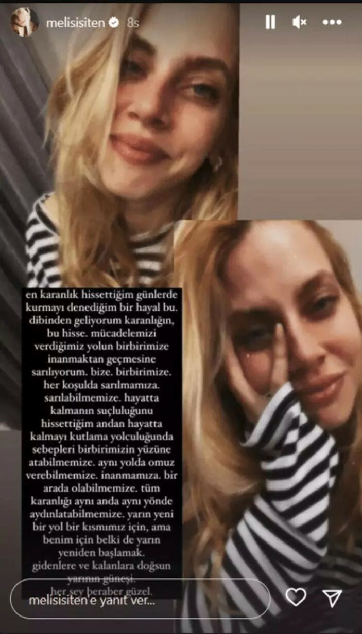Kazada oyuncu Tolga Güleryüz hayatını kaybetmiş, Melis İşiten de yaralı bir şekilde kurtarılmıştı. Ünlü oyuncu Melis İşiten, sosyal medya hesabından yazdığı bir yazı ile dikkat çekti.