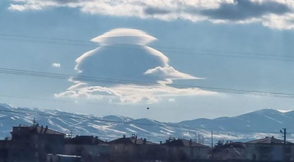 Zaman zaman gökyüzünde kendisini gösteren mercek bulutu bir kez daha gündeme geldi. Bu kez Van ve Niğde’de kendisini gösteren mercek bulutu görenlerin ilgisini çekerken, eline cep telefonunu alan vatandaşlar bu anları kaydetti.