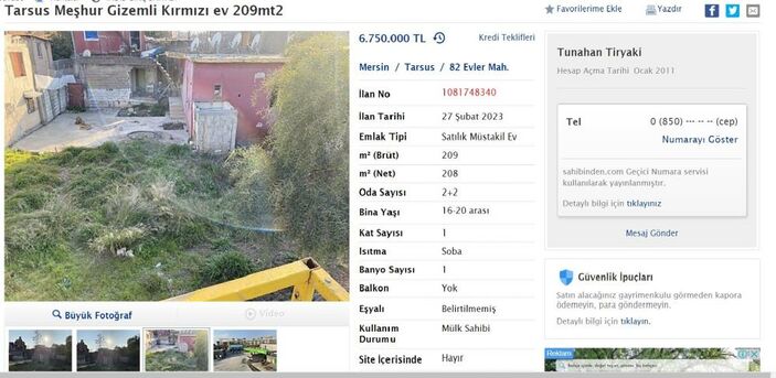 Polis eşliğinde yapılan kazı ile Türkiye’nin gündemine oturan ev satışa çıktı. Mersin’in Tarsus ilçesi 82 Evler Mahallesi’nde tek katlı olan ve Türkiye’de ‘gizemli ev’ olarak bilinen müstakil bir evde, özel harekat polisleri gözetiminde yaklaşık 1 yıl süren gizemli kazı sona ermiş ve alan kapatılmıştı.