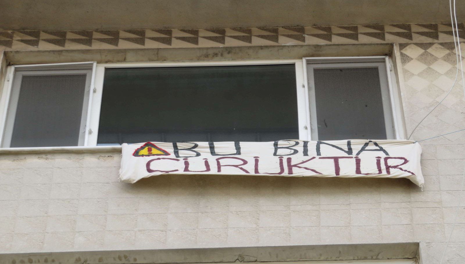 “Bu bina çürüktür” pankartı astı, evi boşalttı
