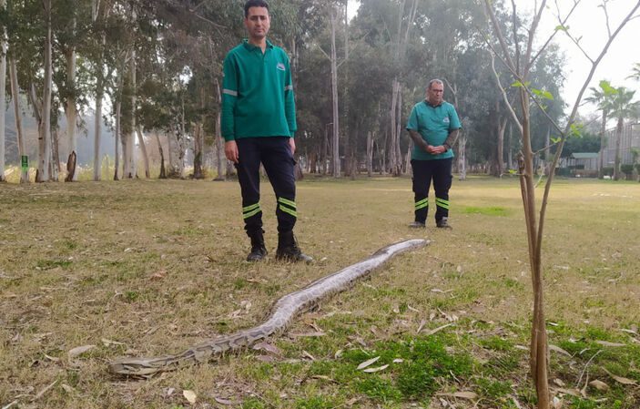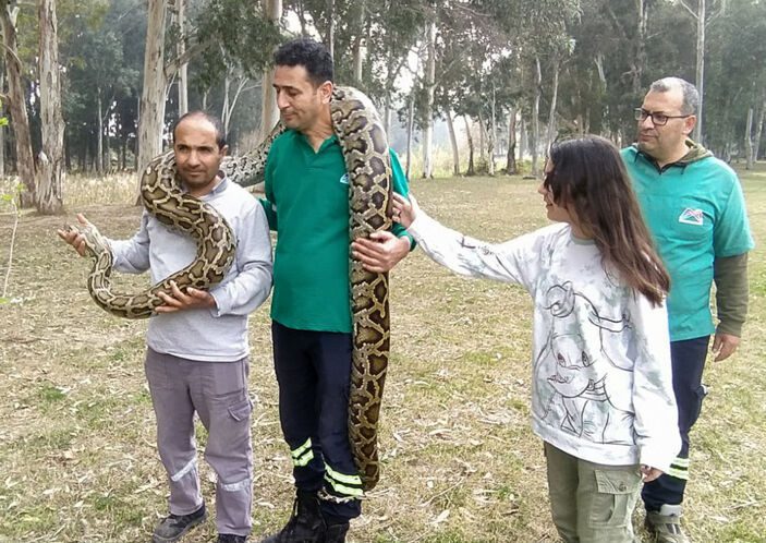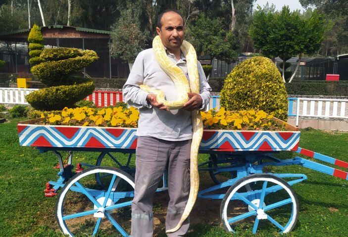 Doğa parkında çalışan Mustafa Karagündüz (48) ve Harun Can (43), her gün metrelerce uzunluğundaki piton, anakonda ve boa yılanlarıyla çok yakından ilgileniyor. Toplam 12 büyük yılanı her gün besleyen ve bakımını yapan ikilinin, hiç kimsenin cesaret edemediği hayvanlarla sarmaş dolaş olması misafirler tarafından da ilgiyle izleniyor.