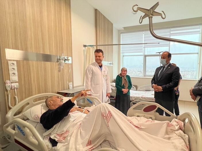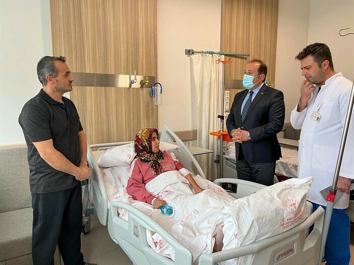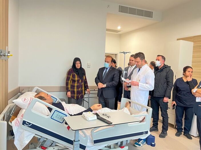 Yaralı afetzedelerle görüşüp “geçmiş olsun” dileklerini ileten Pehlivan, Başhekim Opr. Dr. Sadık Emre Direk’ten tedavi süreçlerine ilişkin bilgi aldı.