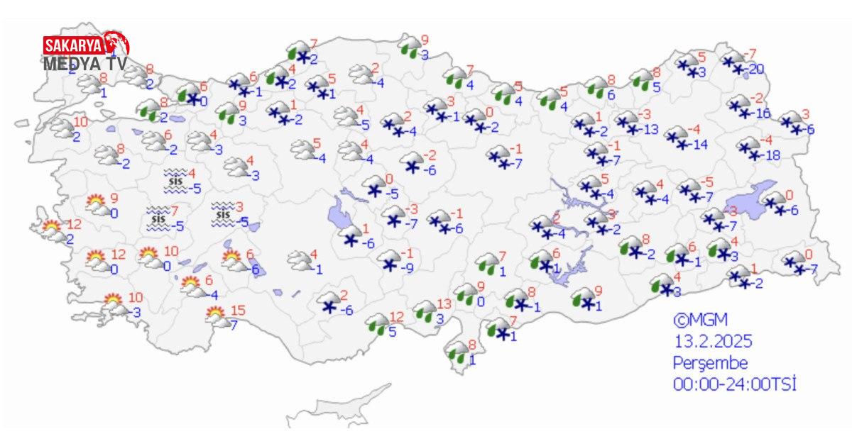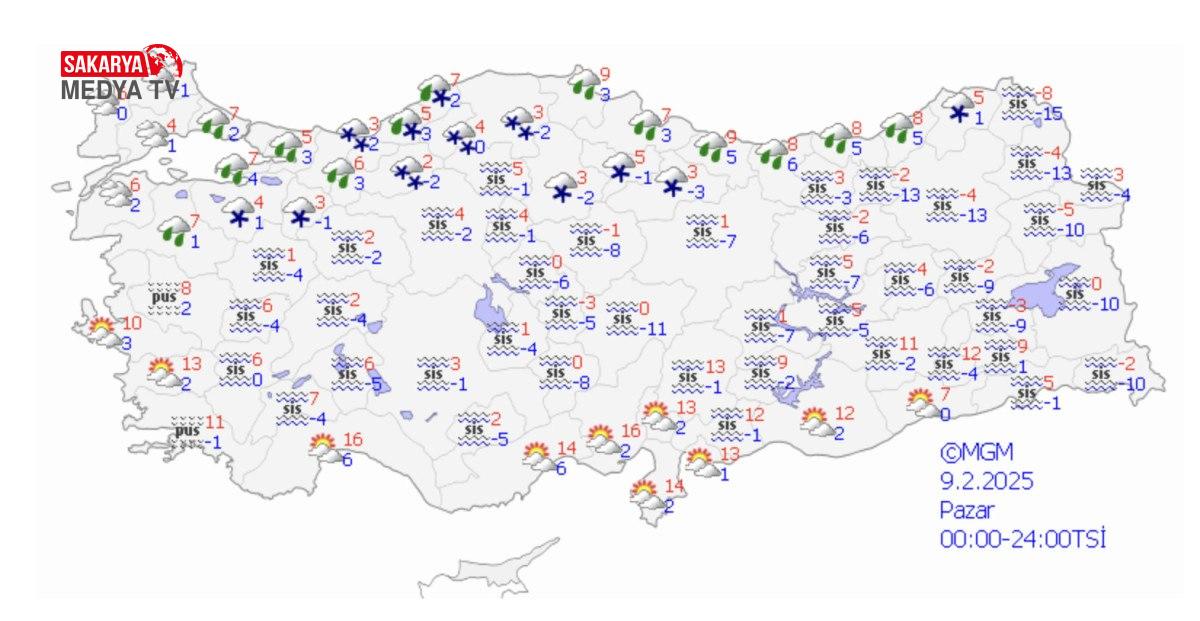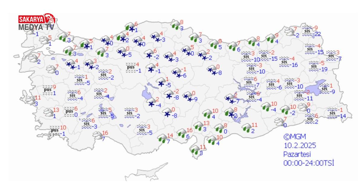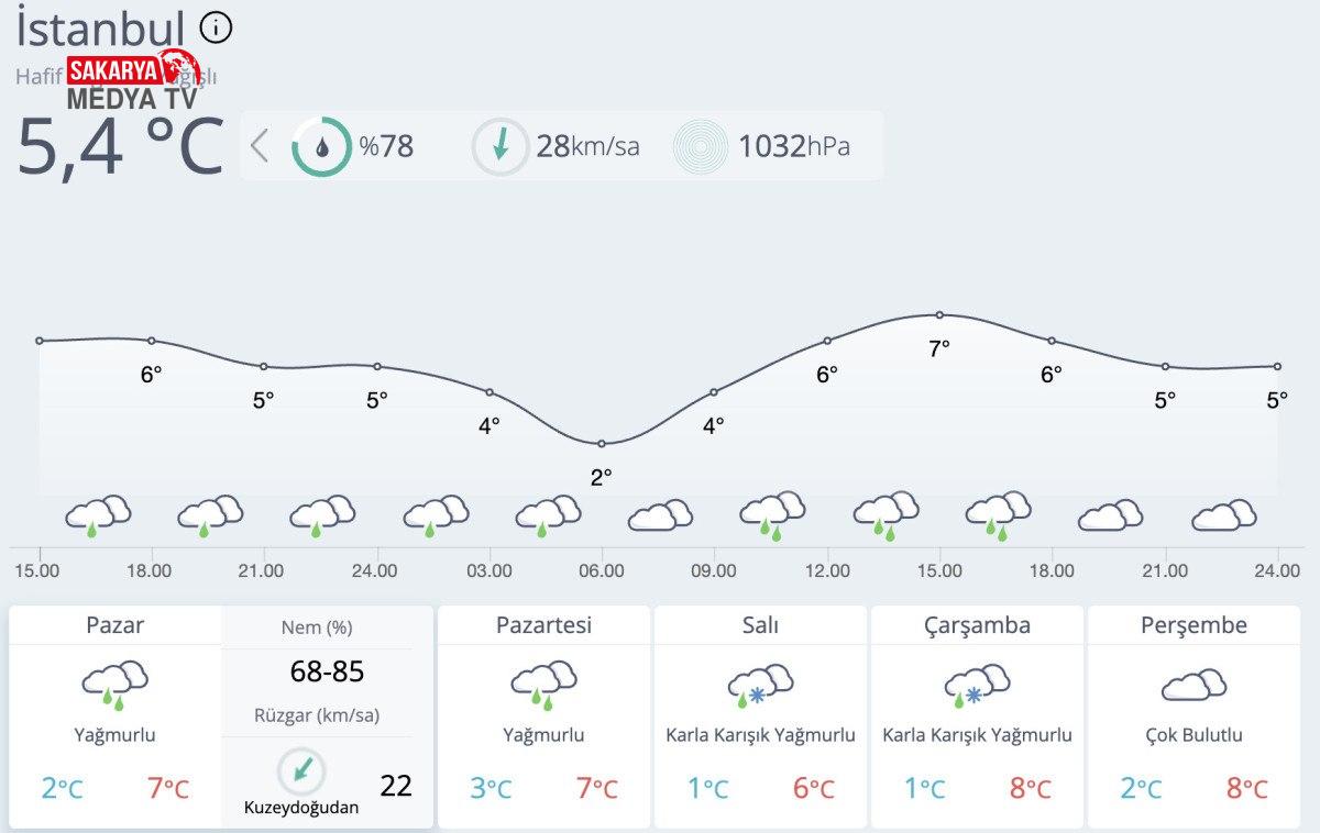 Haber Merkezi Meteoroloji Genel Müdürlüğü tarafından yapılan tahminlere göre; Türkiye genelinin parçalı ve çok bulutlu, Marmara’nın güney ve doğusu, İç Anadolu’nun doğusu, Karadeniz kıyıları ile Bolu, Tokat, Artvin çevreleri ve Doğu Anadolu’nun doğusu ile Malatya, Şanlıurfa, Diyarbakır çevrelerinin aralıklı yağışlı geçeceği, yağışların kıyı kesimlerde yağmur, iç kesimlerde karla karışık yağmur ve kar, Güneydoğu Anadolu’da hafif yağmur ve sağanak şeklinde görüleceği tahmin ediliyor.