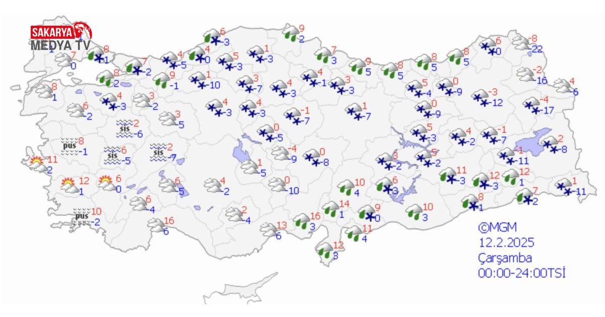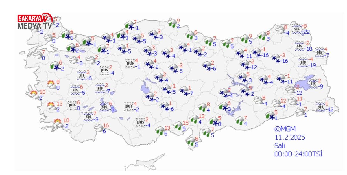 ERZURUM °C, -2°CÇok bulutlu, sabah saatlerinde hafif kar yağışlıKARS °C, -3°CÇok bulutlu, hafif kar yağışlıMALATYA °C, 2°CÇok bulutlu, sabah saatlerinde hafif kar yağışlıVAN °C, 2°CÇok bulutlu, güney ve doğusu sabah saatlerinde hafif kar yağışlı