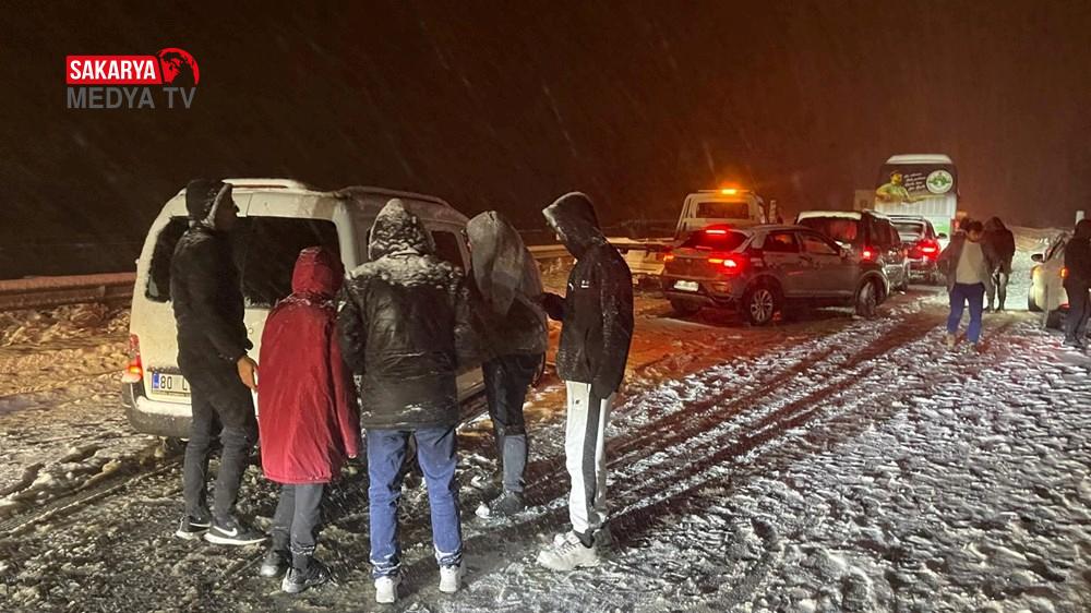 D-100 kara yolu ve Anadolu Otoyolu’na mevsimin ilk karı yağdı.