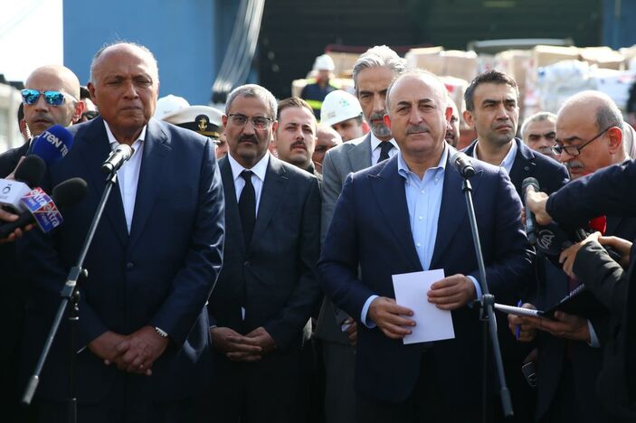 Şukri ve Dışişleri Bakanı Mevlüt Çavuşoğlu, dün Mısır’dan yardım malzemesi taşıyan “El Hürriye” gemisinin yanaştığı Mersin Uluslararası Limanı’nda basına açıklamalarda bulunmuştu.