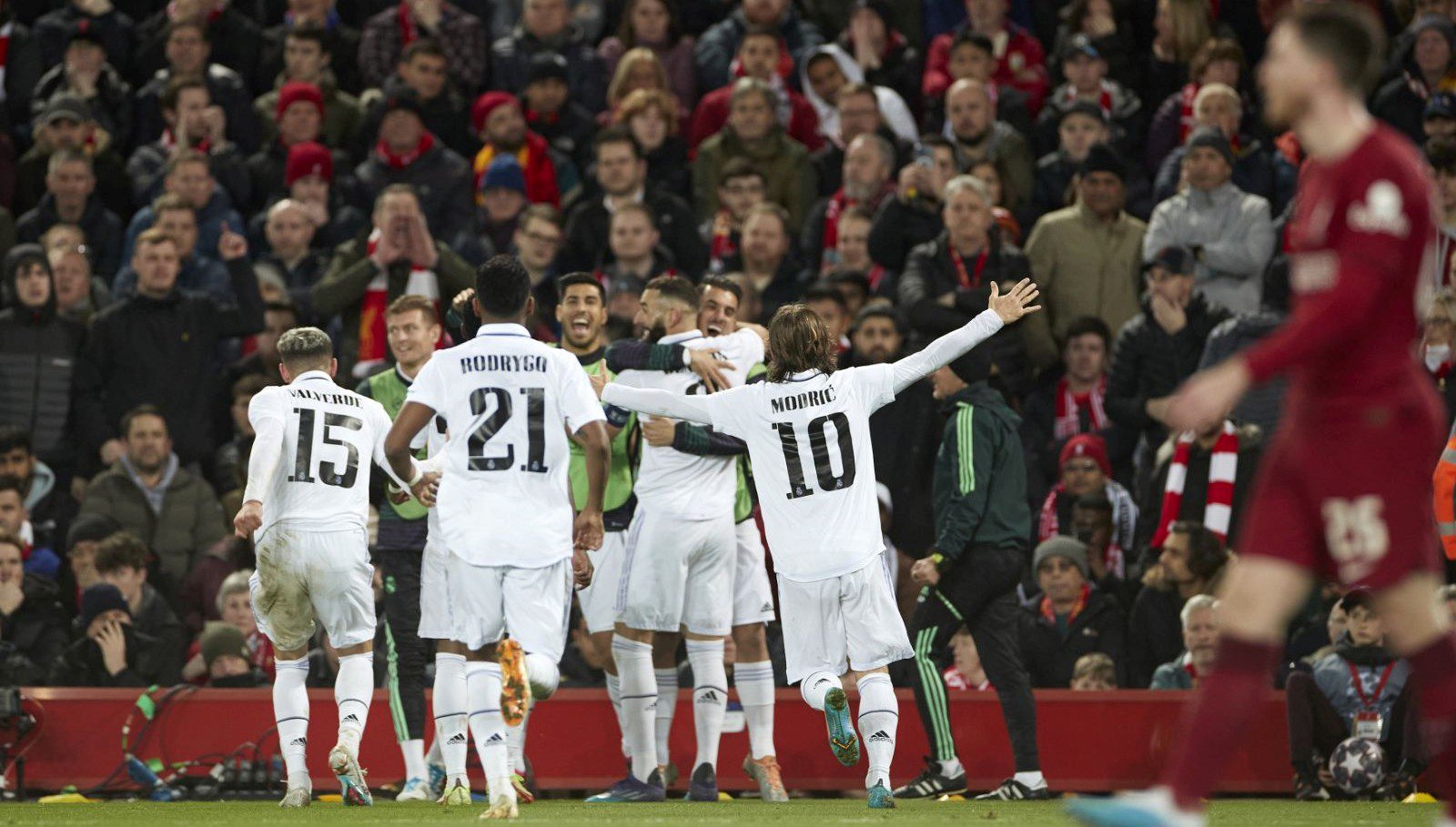 Vinicius Junior, Real Madrid’in 2-0 geriye düştüğü karşılaşmada ilk yarıda attığı gollerle takımını soyunma odasına 2-2 beraberlikle götürdü. Vinicius, attığı 2 golle Real Madrid formasıyla Liverpool’a toplamda 5 gol atarak en çok gol atan oyuncu oldu.