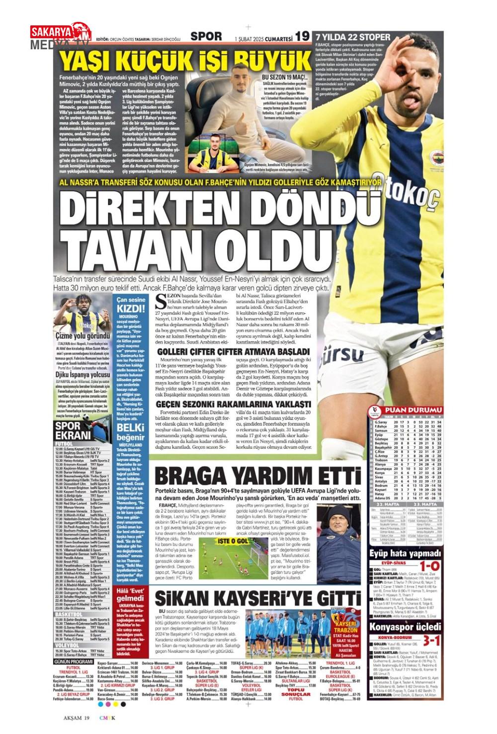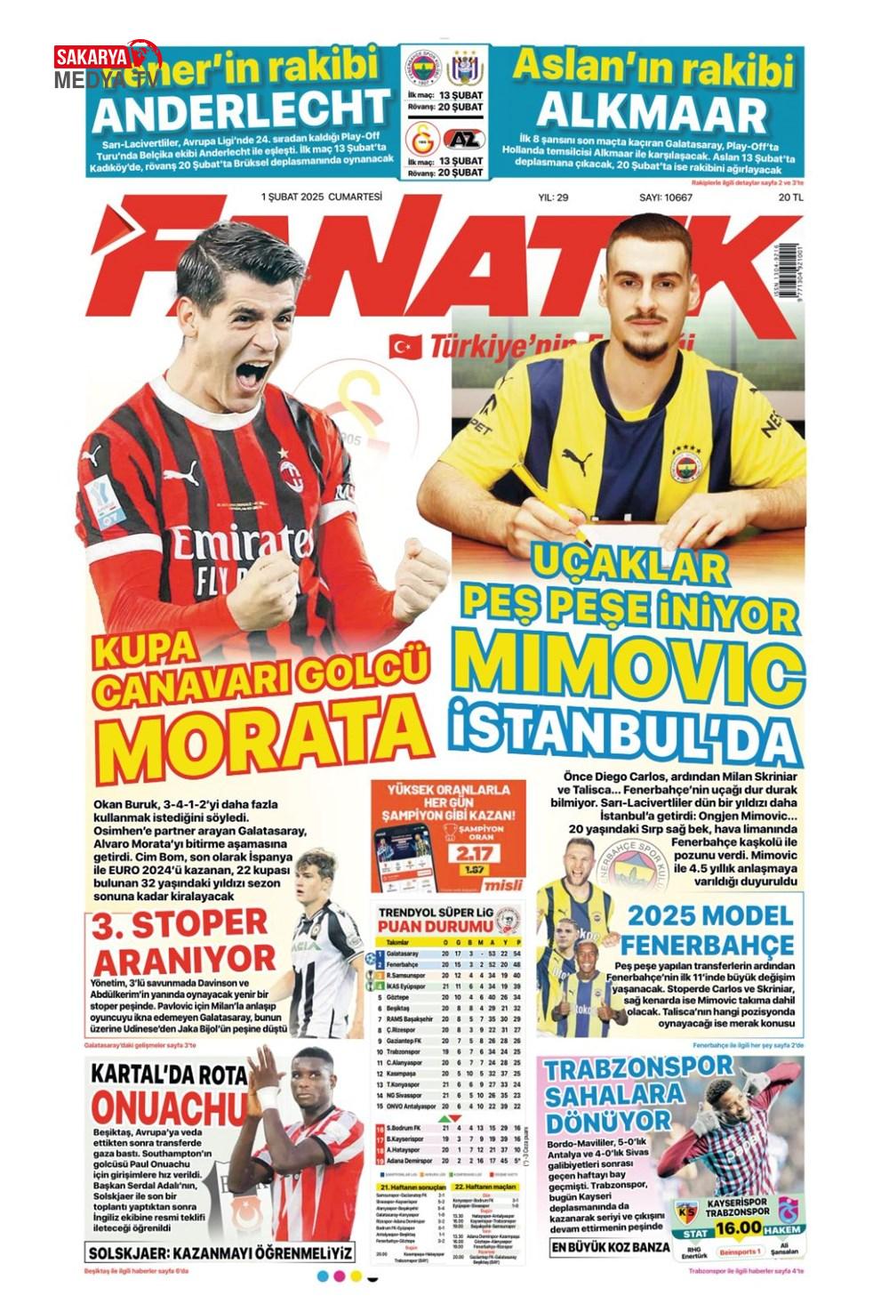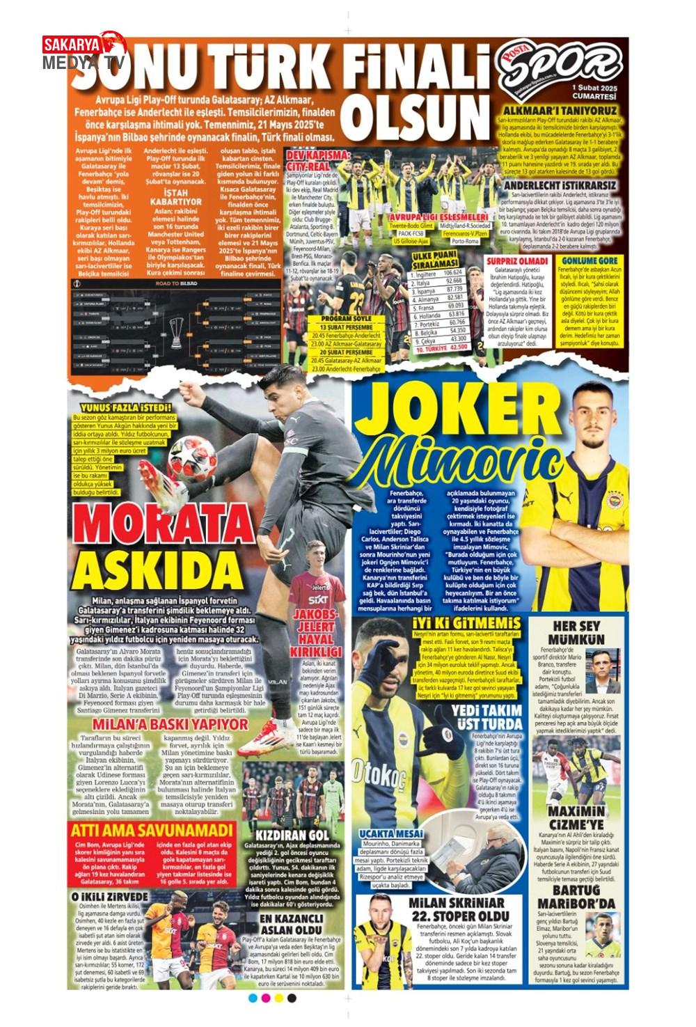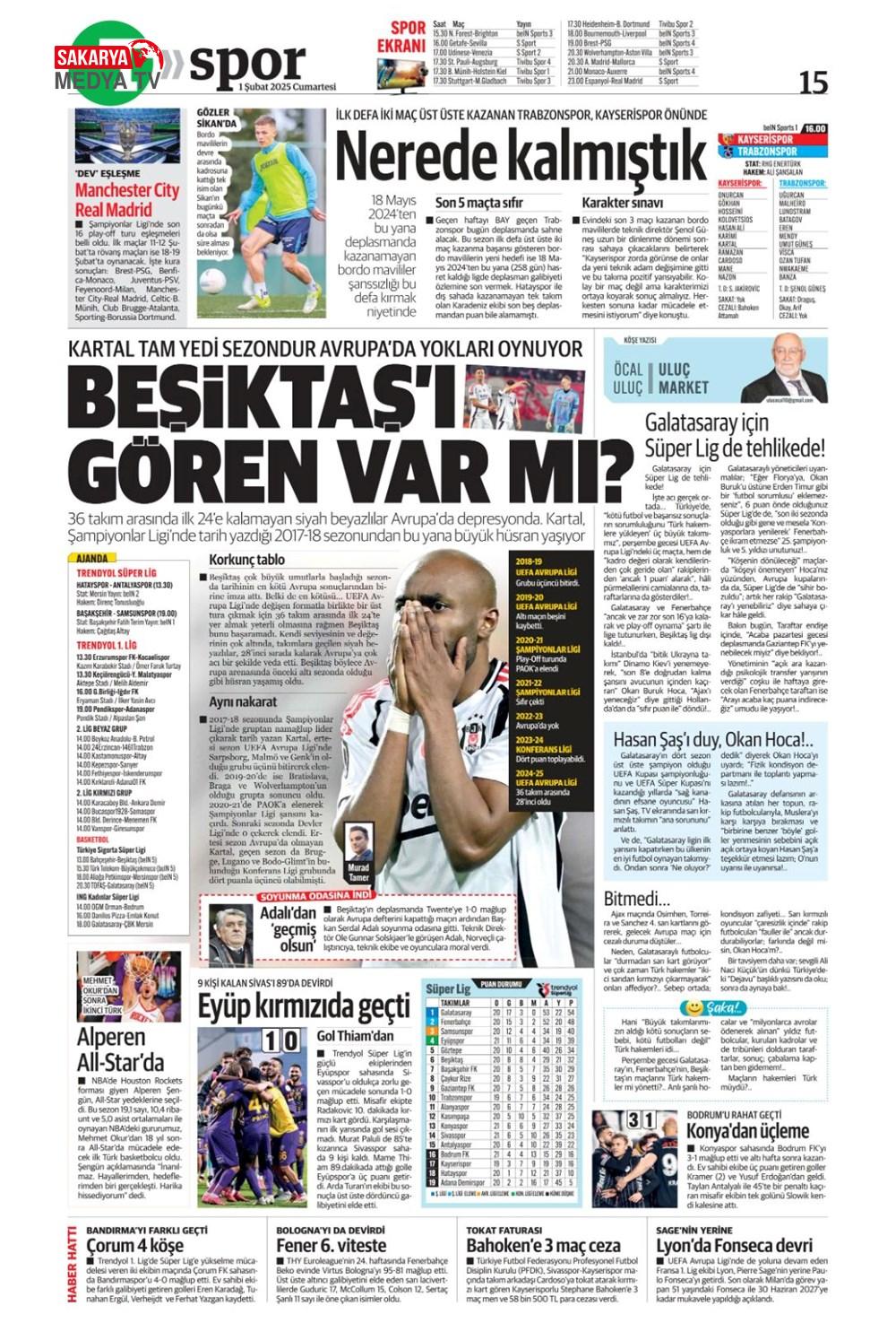 “Dev Ocak planı ” (1 Aralık 2024 spor manşetleri)
