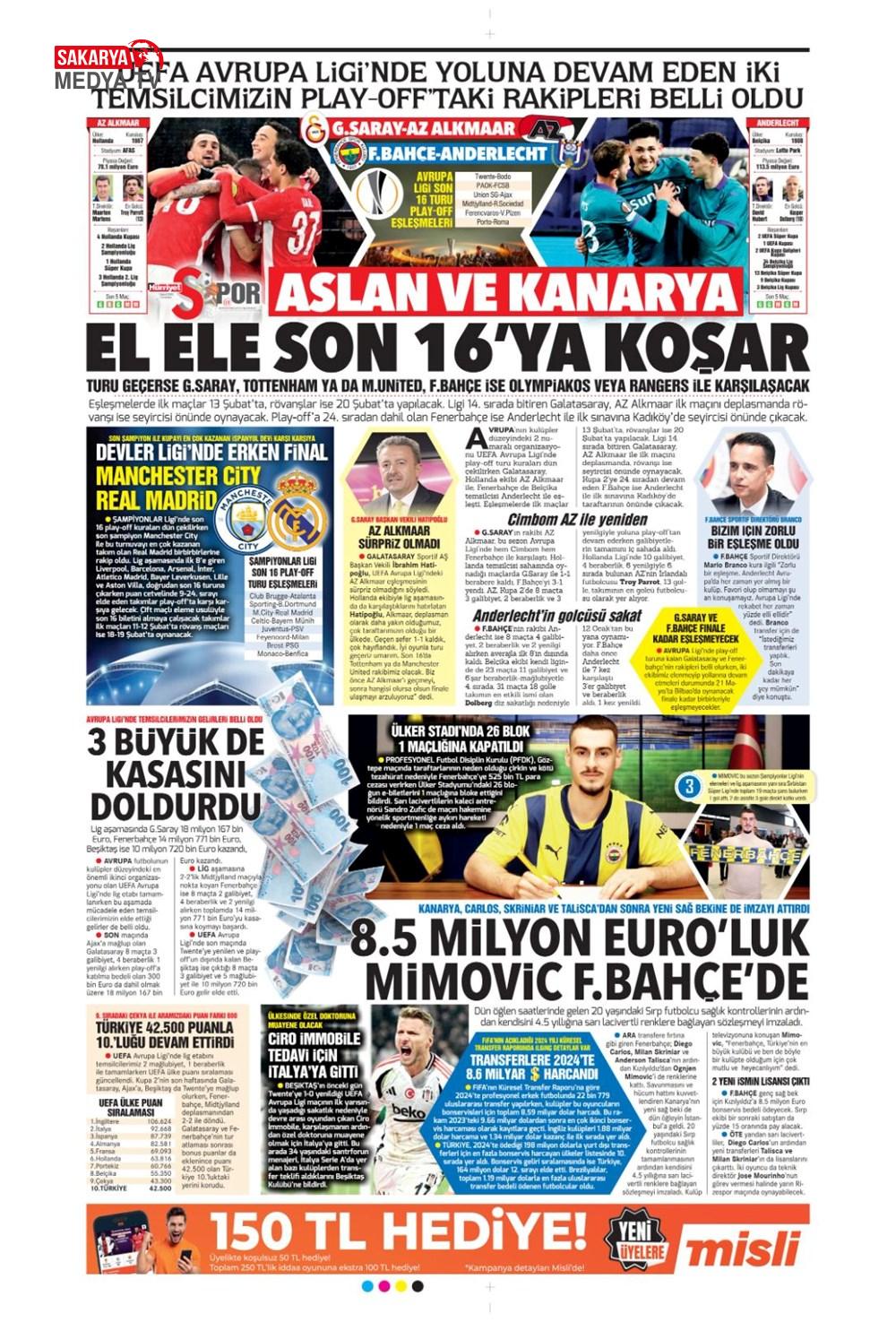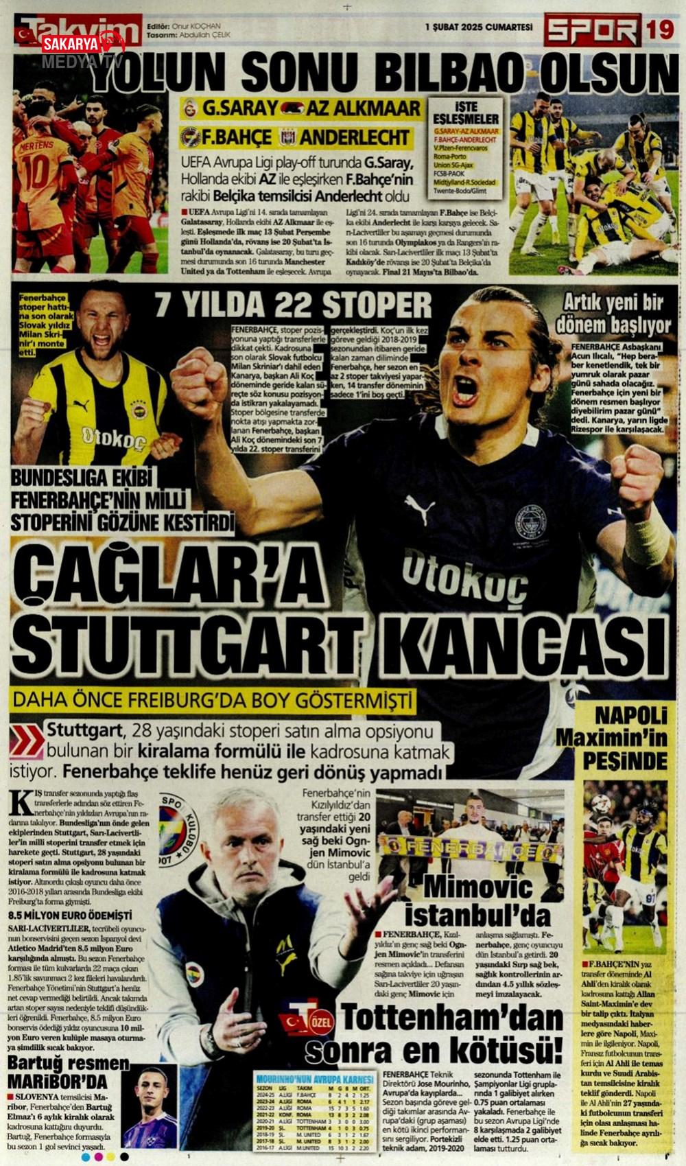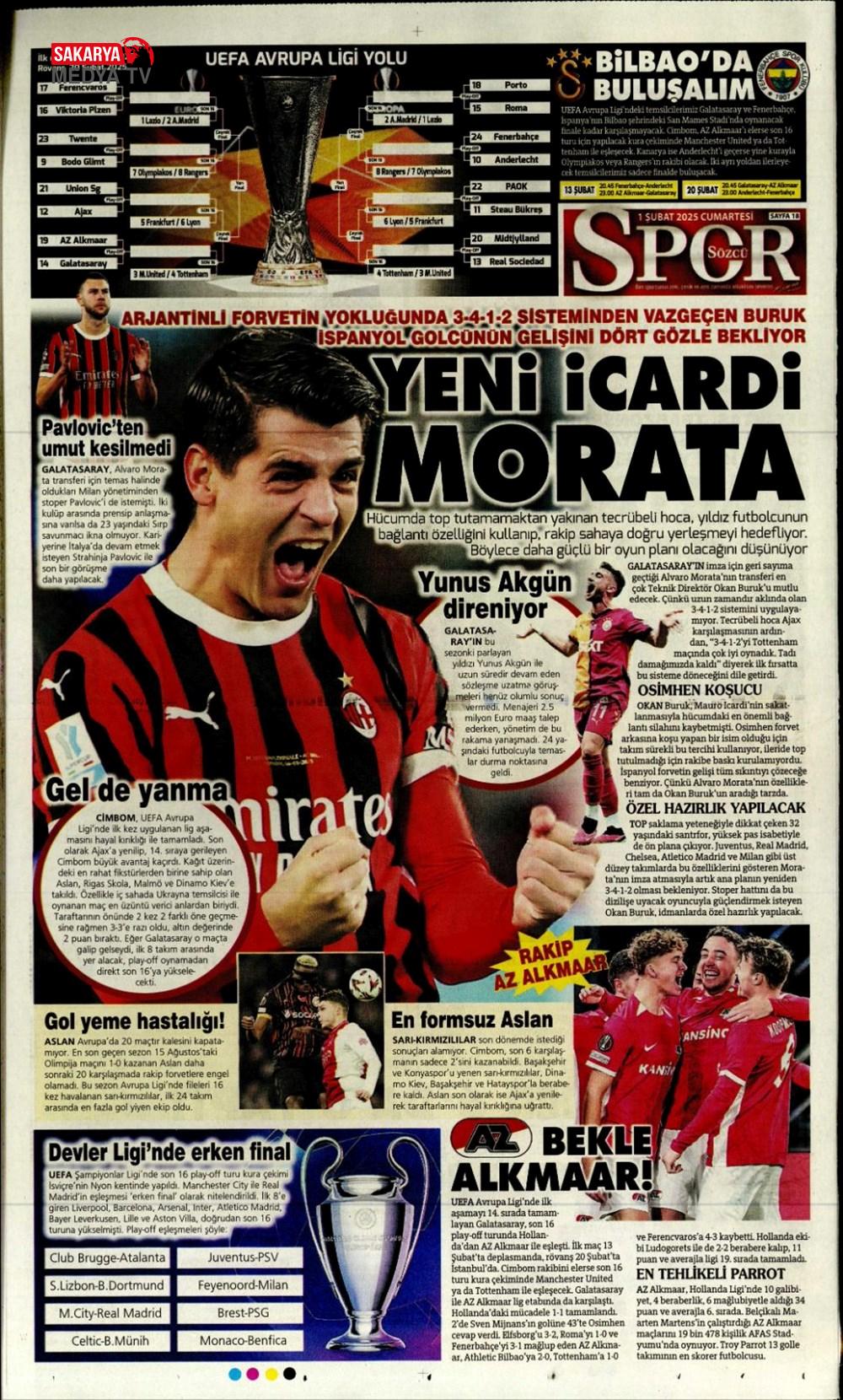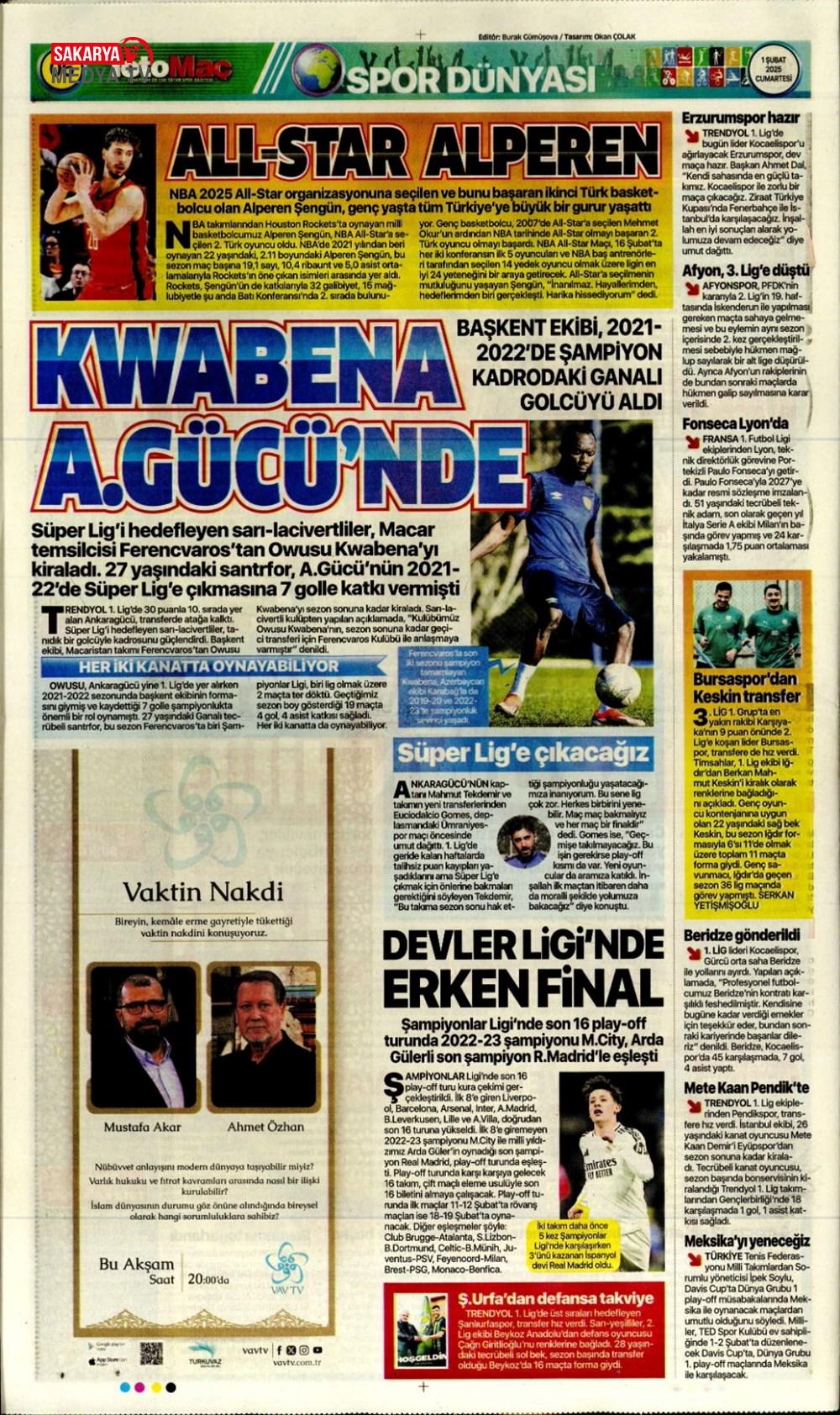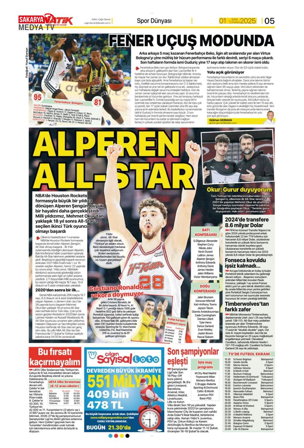 “Dev Ocak planı ” (1 Aralık 2024 spor manşetleri)