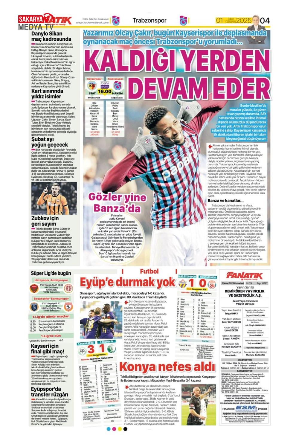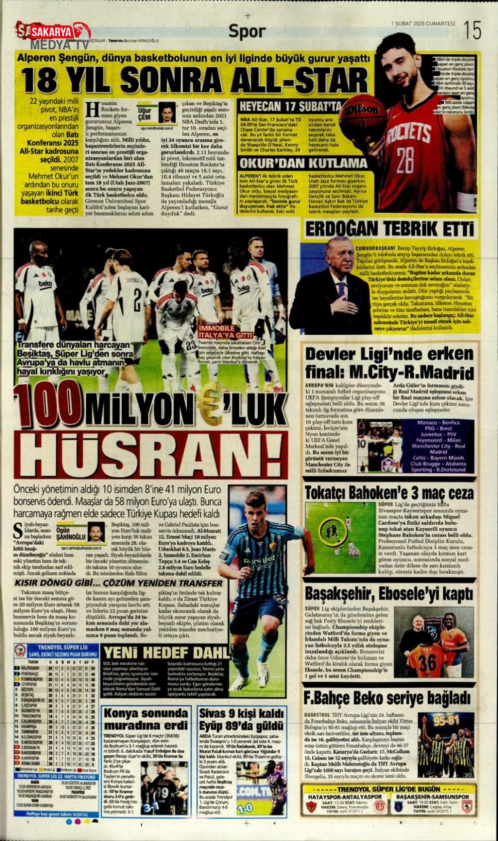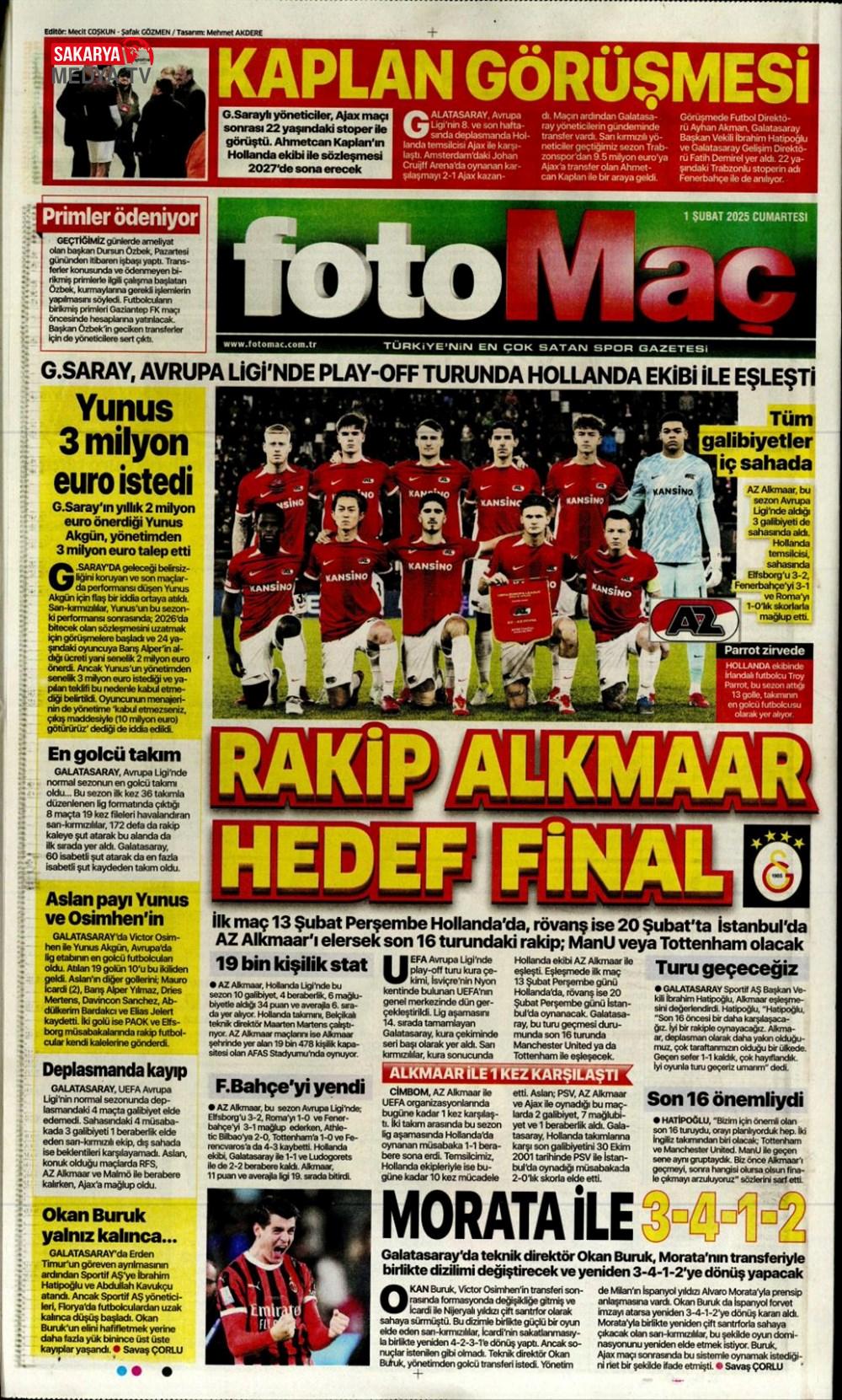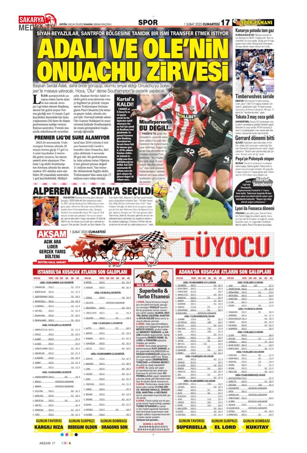 “Dev Ocak planı ” (1 Aralık 2024 spor manşetleri)