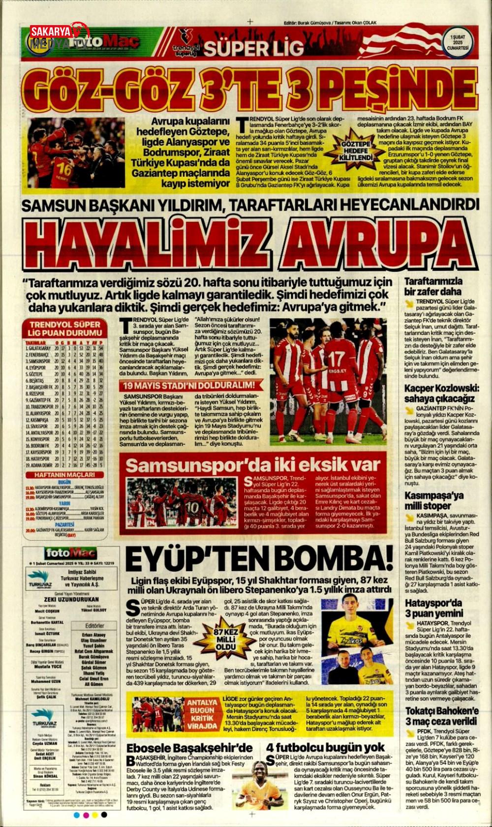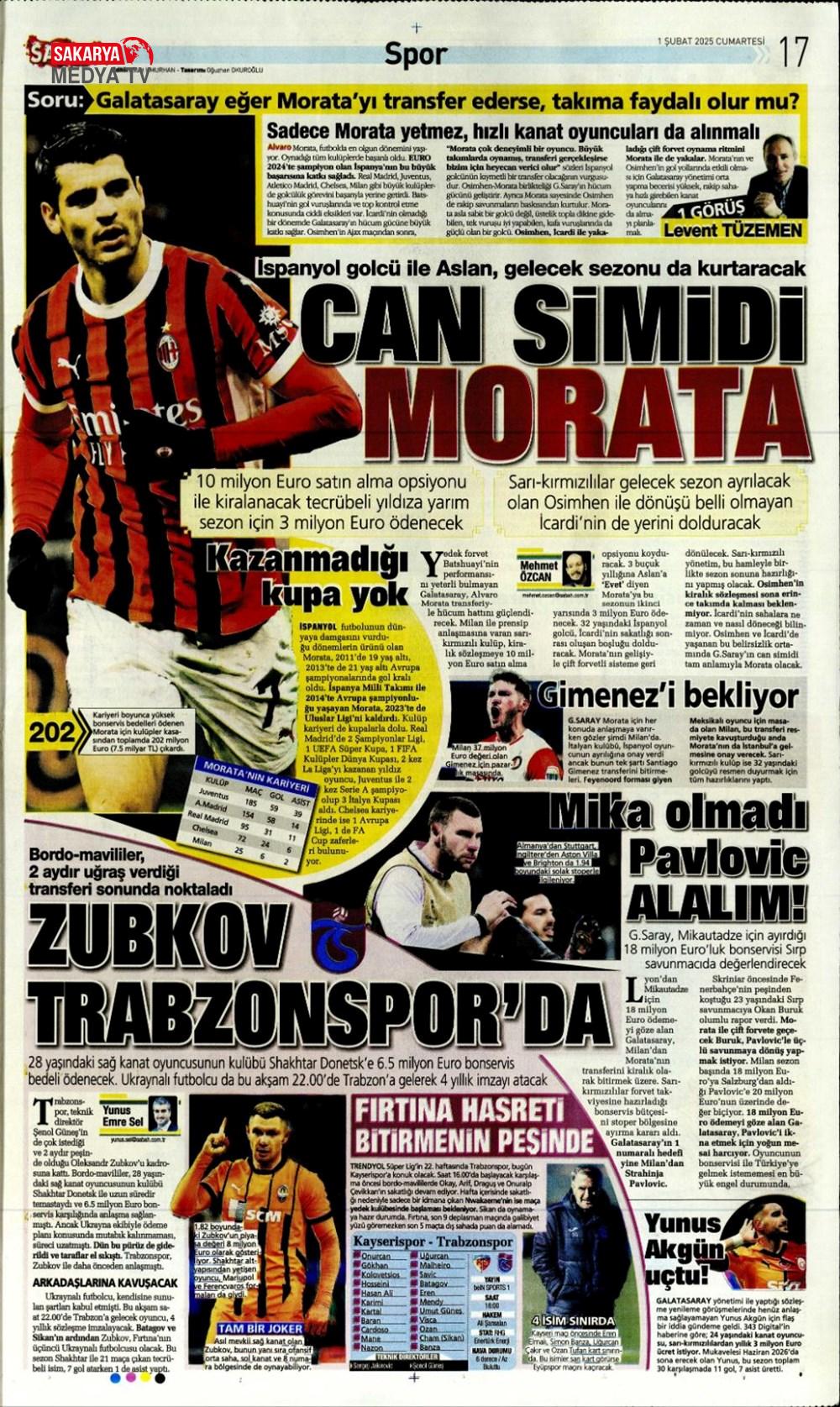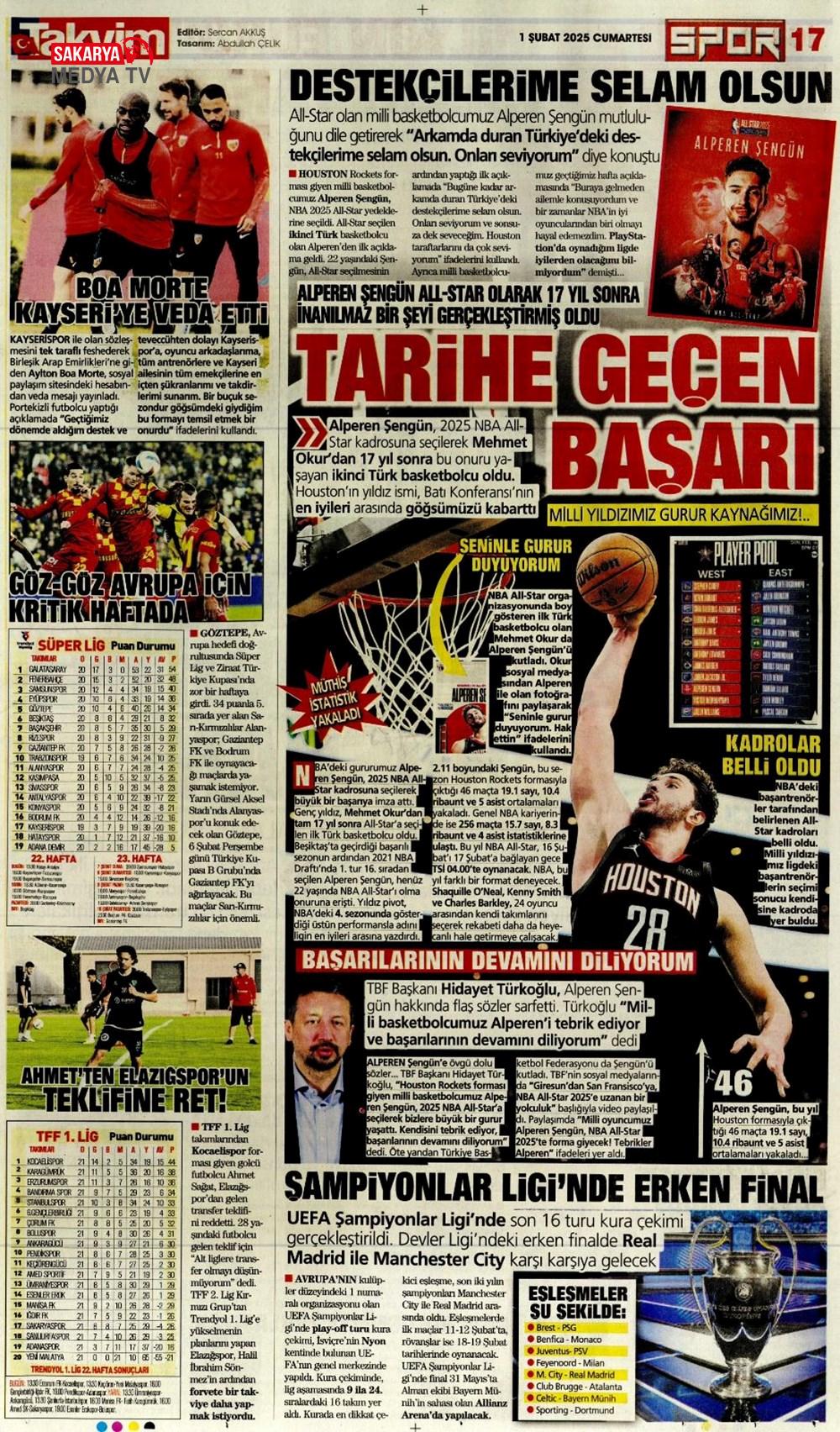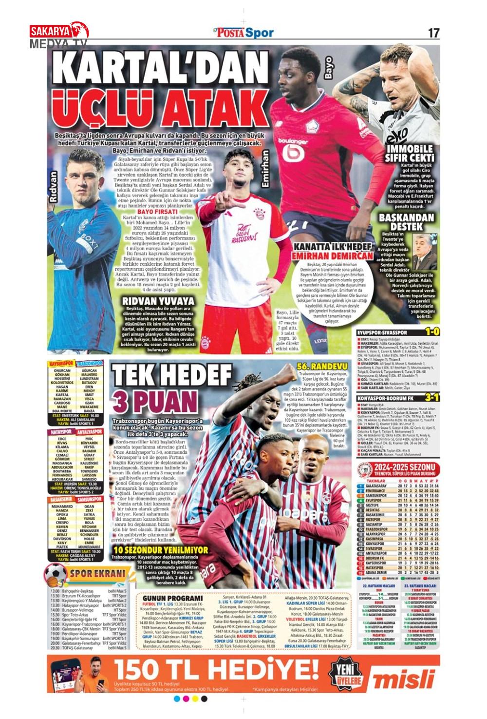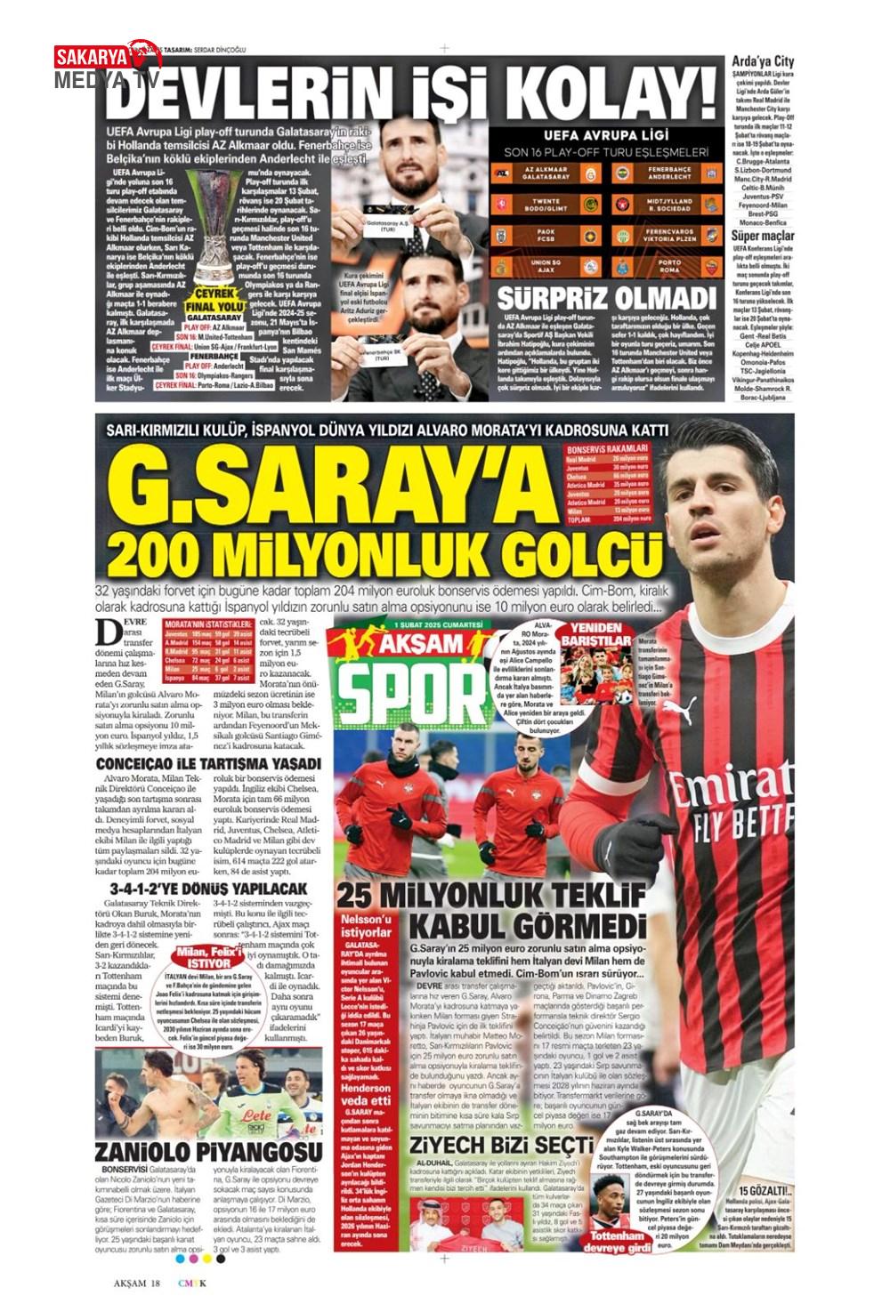 “Dev Ocak planı ” (1 Aralık 2024 spor manşetleri)