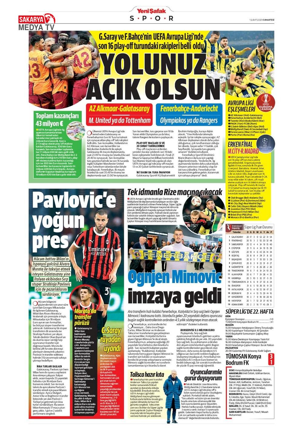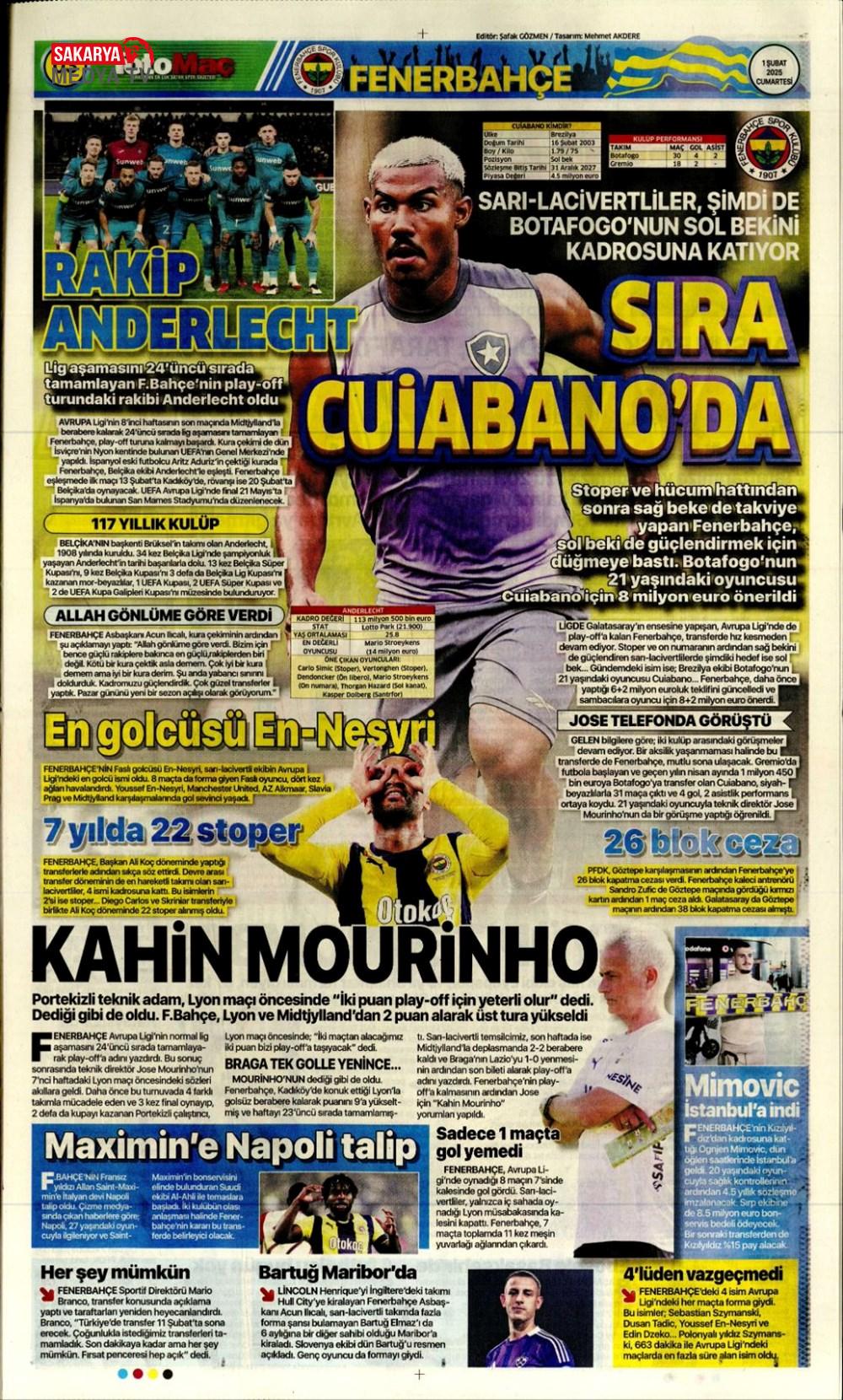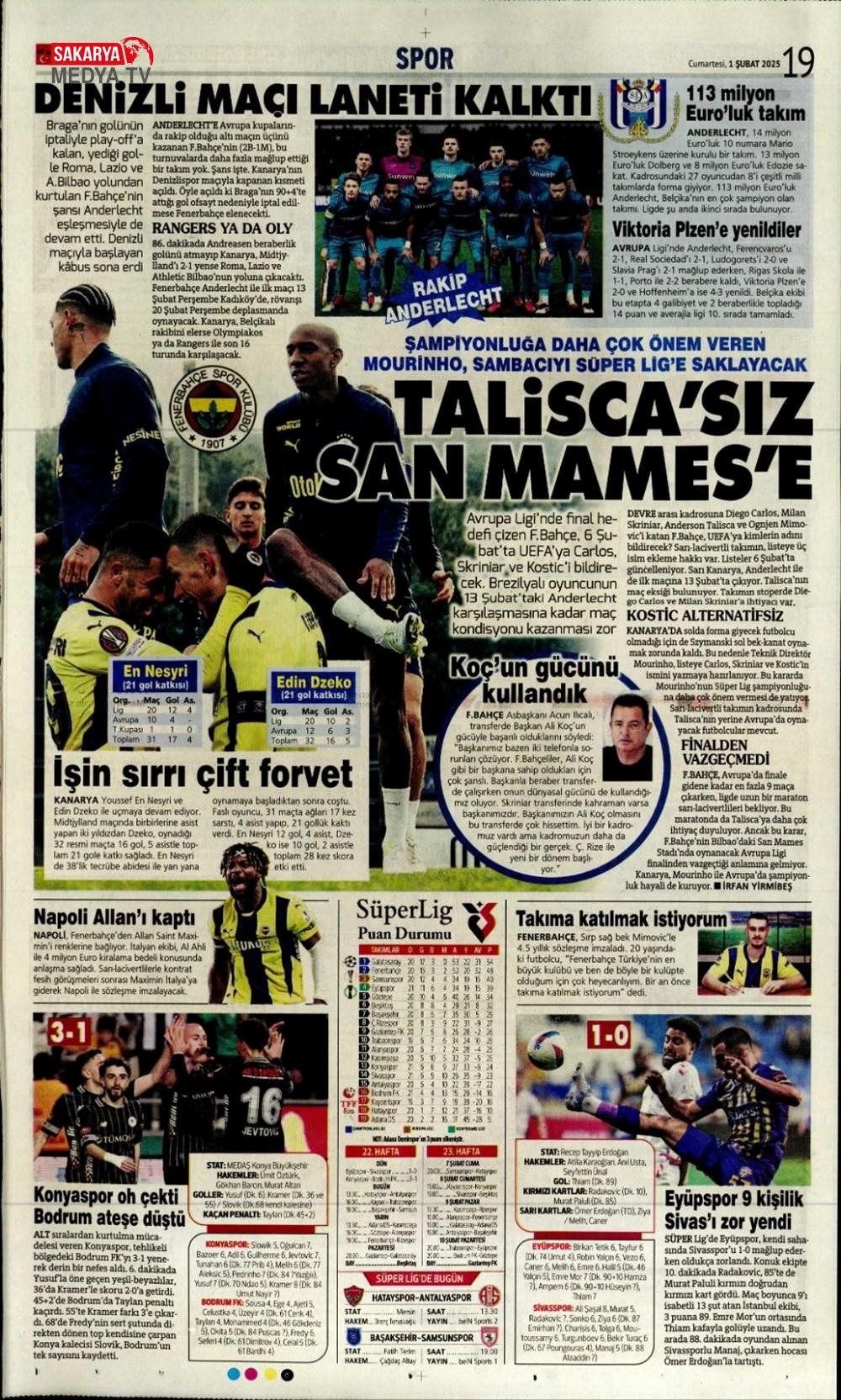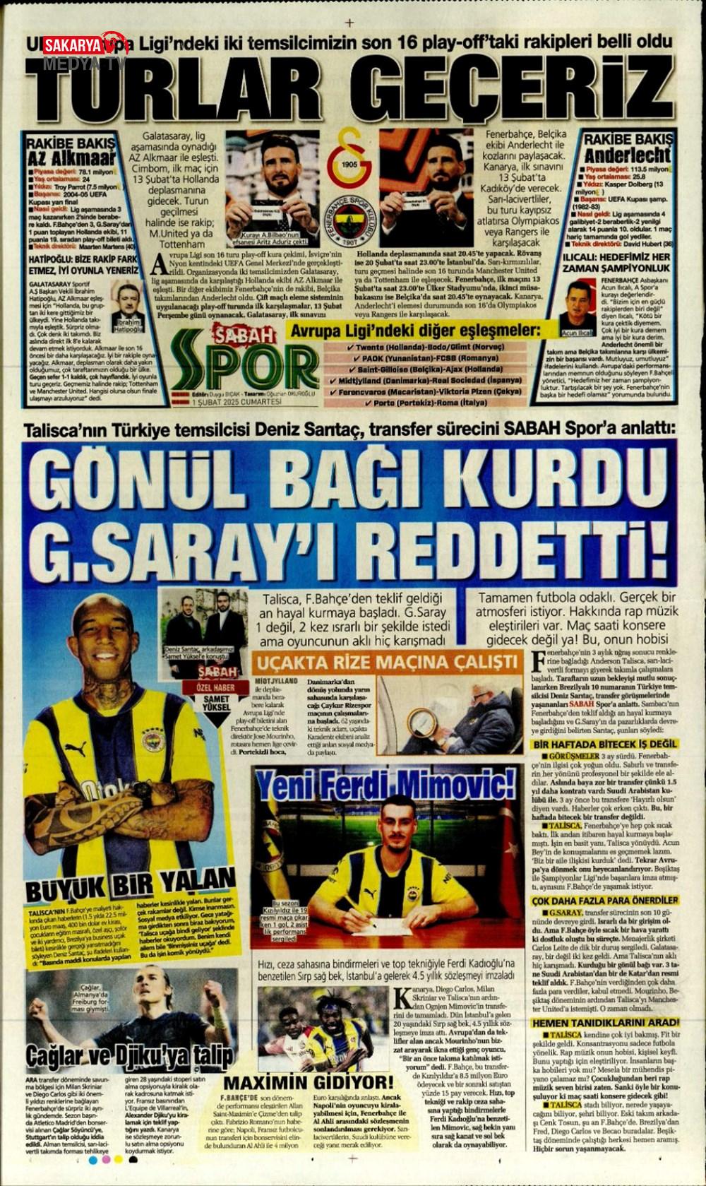 “Fenerbahçe’de Roberto Firmino bombası” (9 Şubat 2025 spor manşetleri)