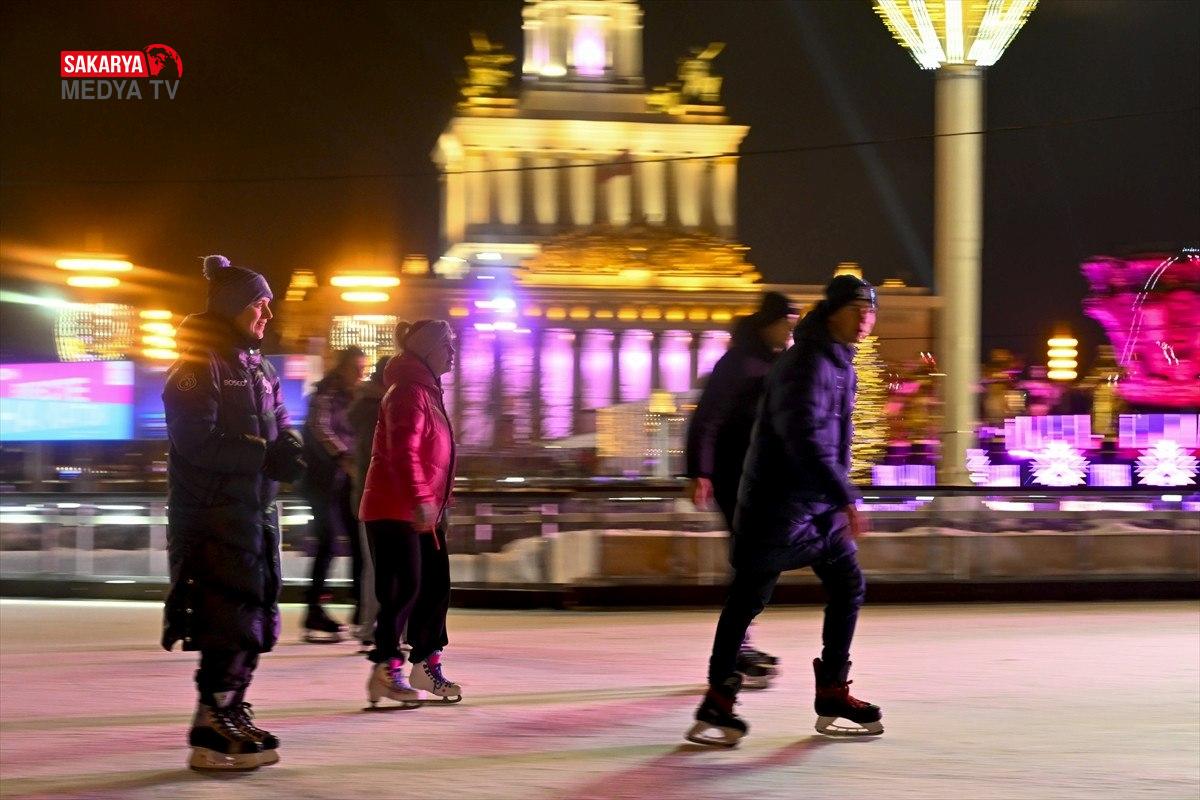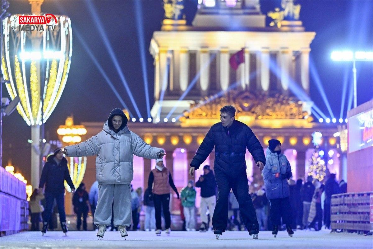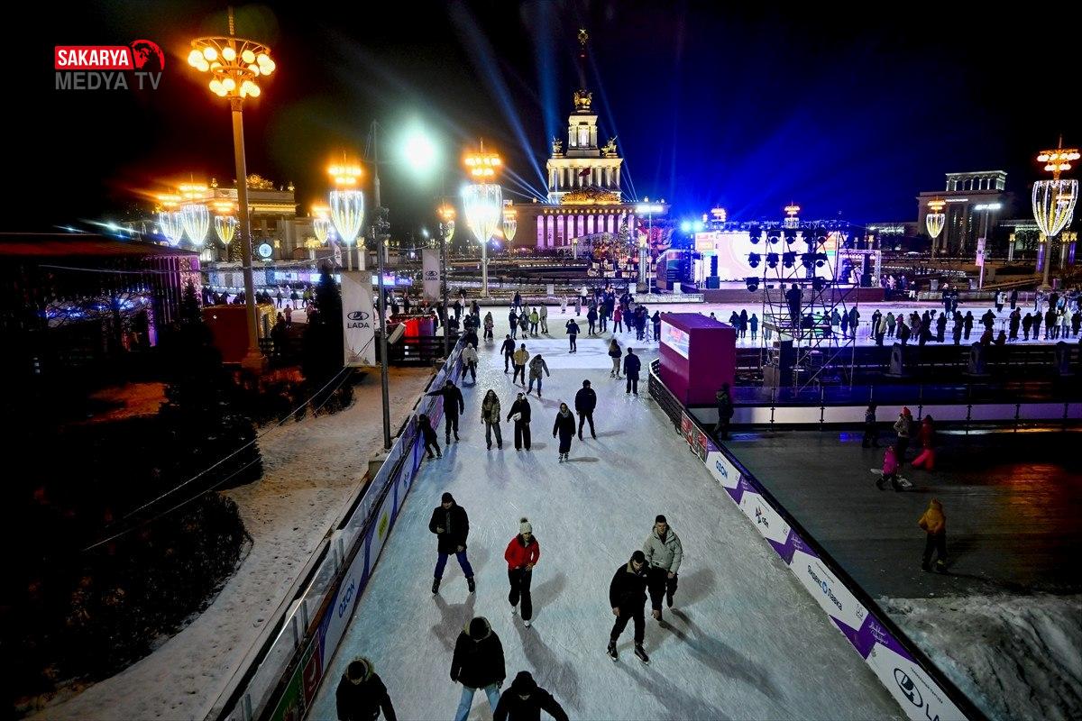 Moskova’daki VDNH Fuar Merkezi’nde kurulan buz pateni pistinin açılışı merasimle yapıldı.