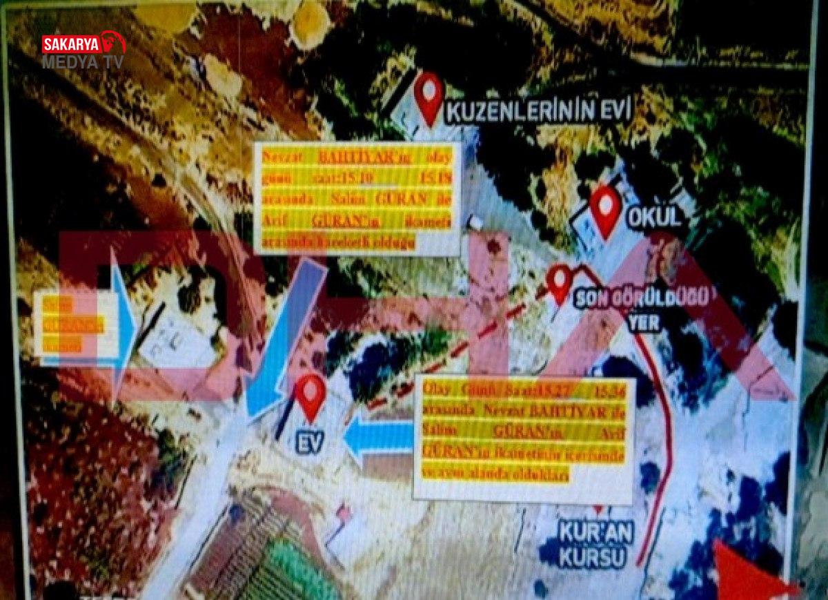 Raporun genel kıymetlendirme kısmında da şu tabirlere yer verildi:“1-21.08.2024 günü anne Yüksel Güran’ın saat 14.28 de ikametinde olduğu tıpkı gün saat 16.39’a kadar kendi ikametinde bulunmaya devam ettiği, ikameti dışında bir yerde olmadığı bedellendirilmektedir. 2-Salim Güran’ın 21.08.2024 günü saat 14.52 sıralarında ikametinden çıktığı, saat.15.19’a kadar Arif Güran’ın ikameti ve yakınlarında bulunduğu, saat 15.20’de Arif Güran’ın ikametine geldiği, giriş yaptığı, daha sonra meskenin art tarafında bulunan ahır kısmına geçip geri Arif Güran’ın ikametine girdiği ve saat 16.10’a kadar Arif Güran’ın konutunda ve müştemilatında olduğu, Nevzat Bahtiyar ile 21.08.2024 günü saat 15.10 ile saat 15.40 ortası hareketlerinin uyumlu olduğu, birlikte oldukları bedellendirilmektedir.