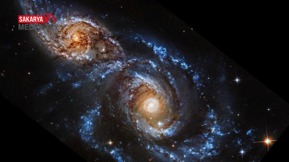 Bu etkileşim, galaksilerdeki gaz bulutlarının sıkışmasına neden olarak yeni yıldızların doğumunu tetikliyor. Hubble Teleskobu’nun ultraviyole ışık imajlarında, yeni doğan yıldızların parıltısı mavi renklerle besbelli biçimde görülebiliyor.